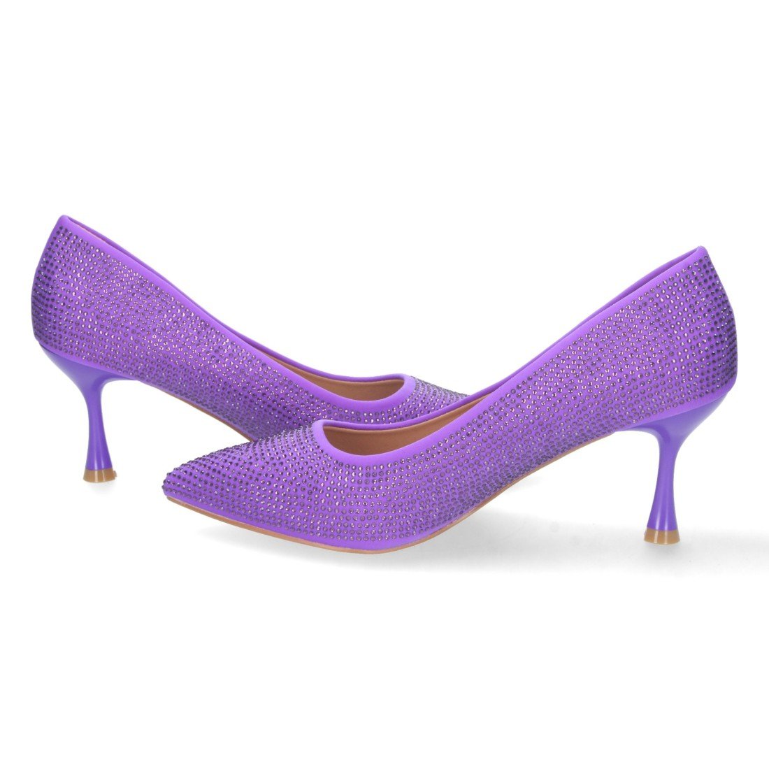 Zapato de Tacon Fino para Mujer, Comodo, Estilo Salon, con Strass, Punta Fina, Otoño Invierno 2022