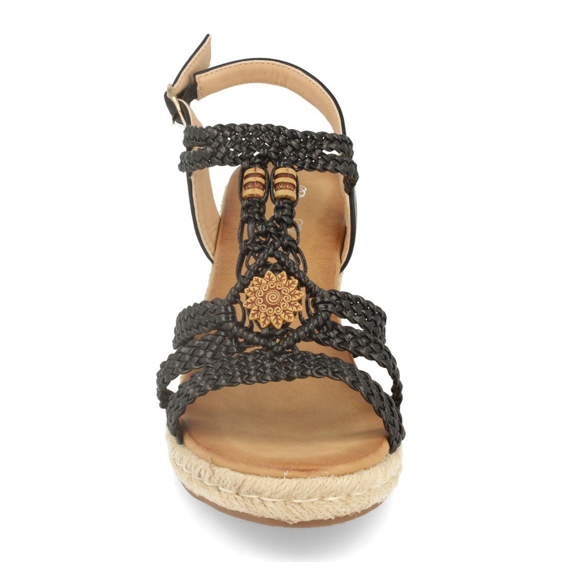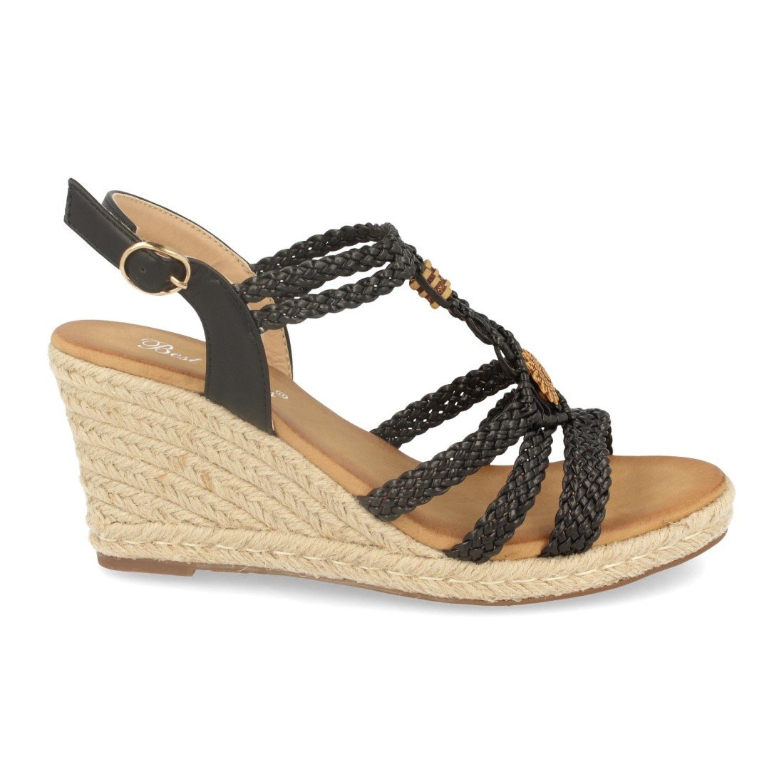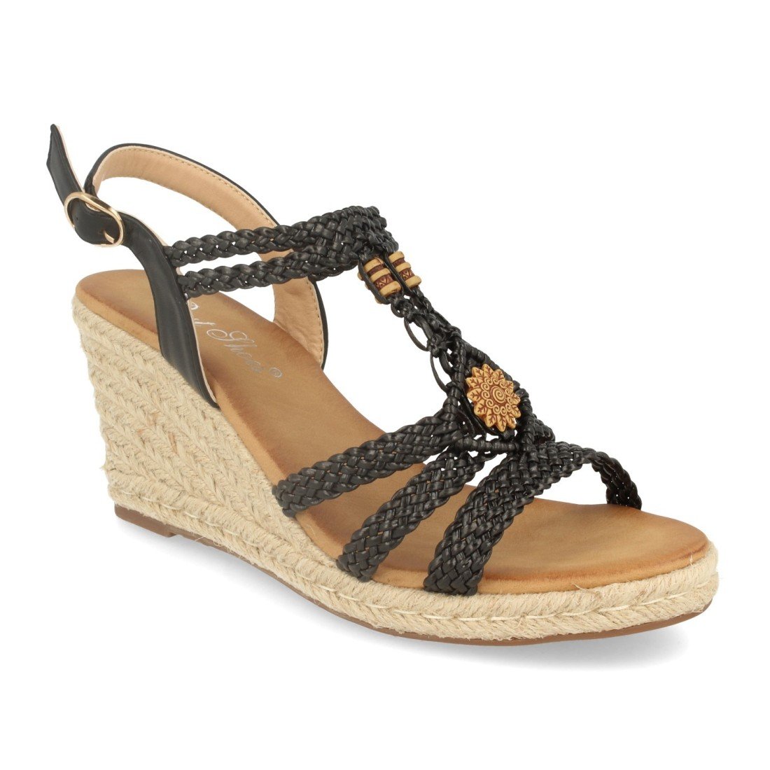 Sandalia de Cuña con Yute, Correa en Forma de T Trenzada, Adornado en Pala, Cierre de Hebilla Primavera Verano 2020