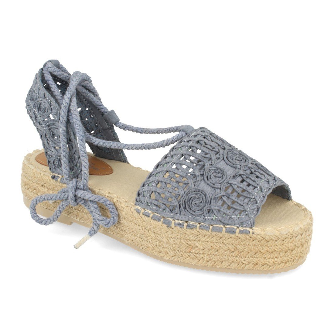 Sandalia Plana de Mujer, Forrado de Yute, con Pala de Rafia, y Cierre de Cordones, Primavera Verano 2021