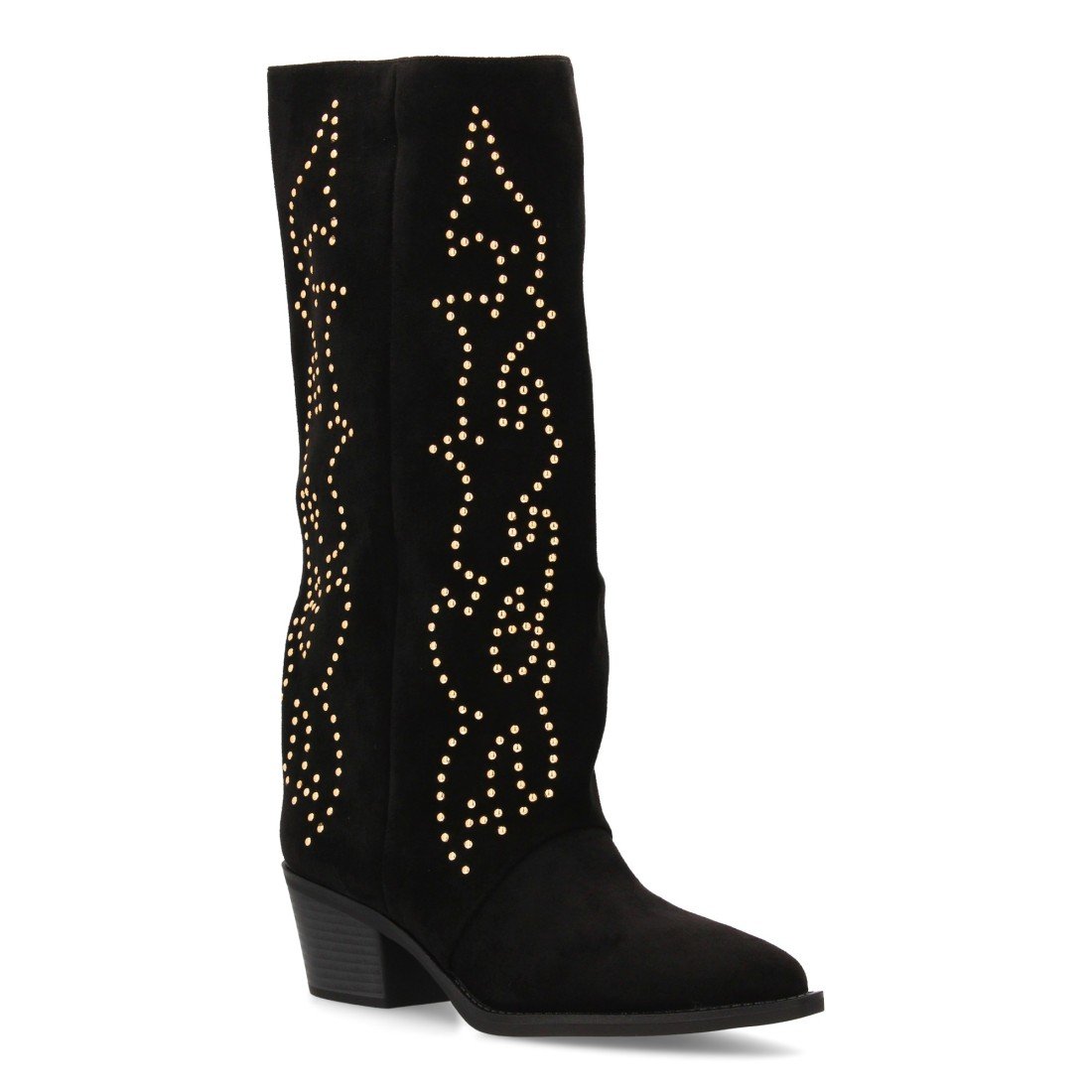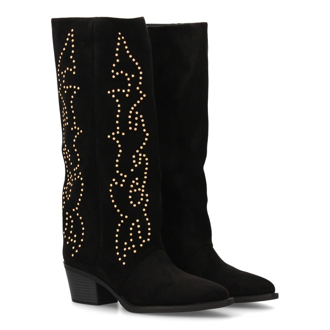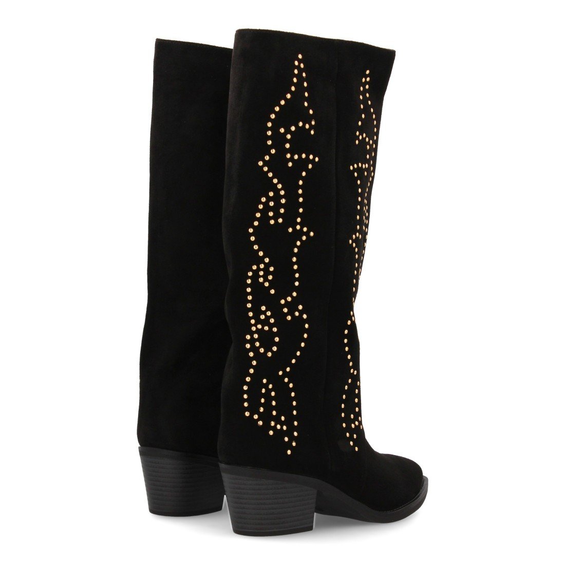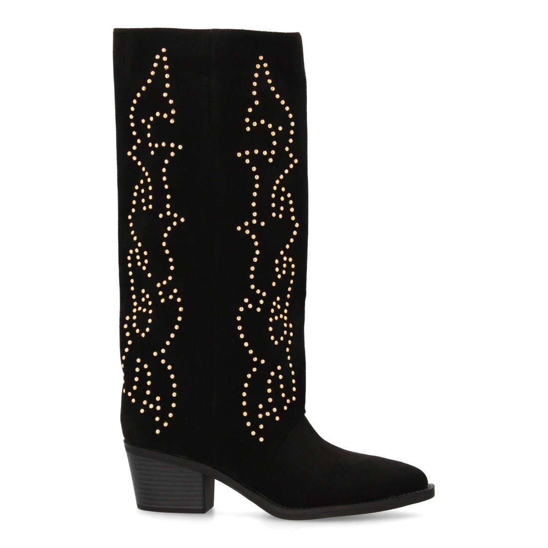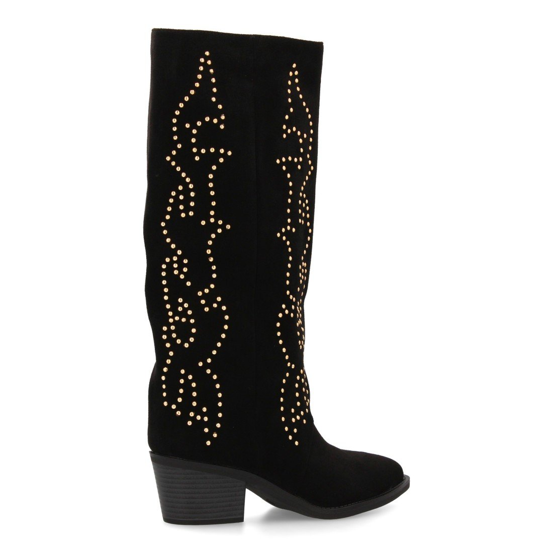 Bota alta cowboy con caña alta y tachuelas para mujer. Tacón medio y cómodo. Estilo campero, estampado liso, cierre de cremallera ideal para otoño invierno.