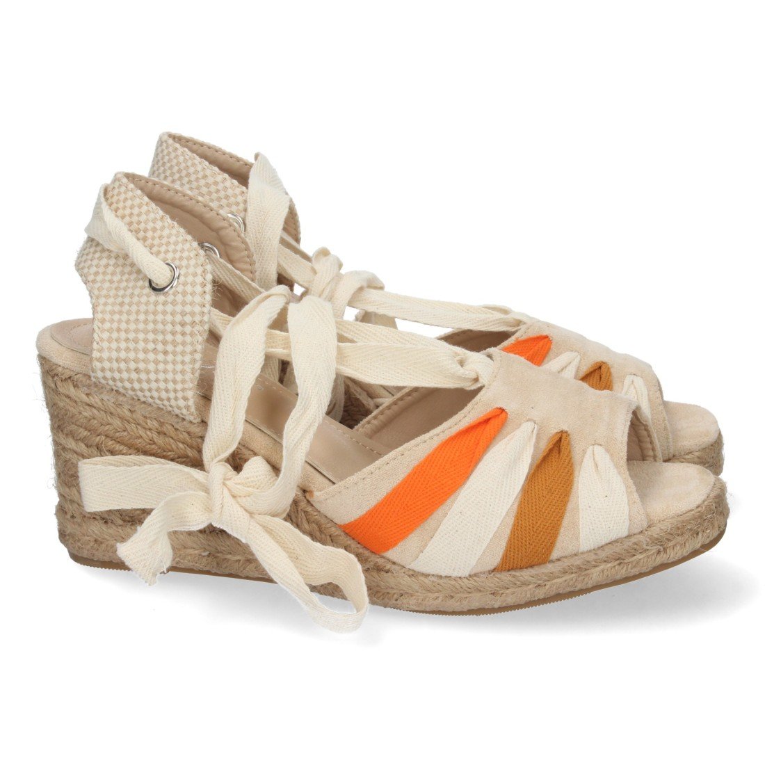 Sandalias de Cuña para Mujer, Forrada de Yute, Comodas, con Pala de Colores, y Cierre de Cordones, Primavera Verano 2022