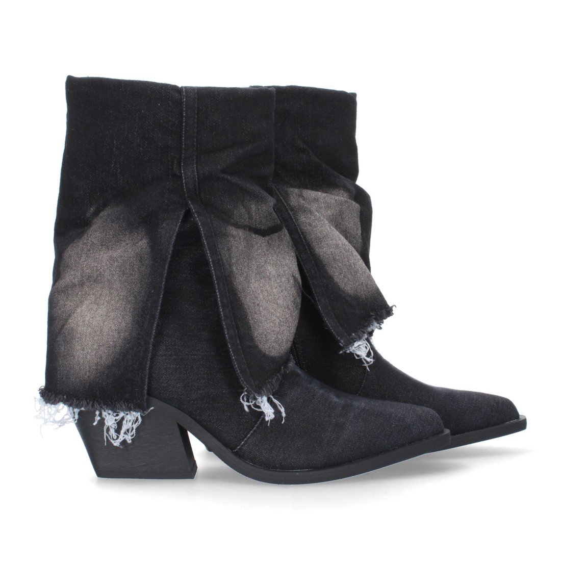 Botín de tacón para mujer, cierre de cremallera, forrada de tela vaquera.