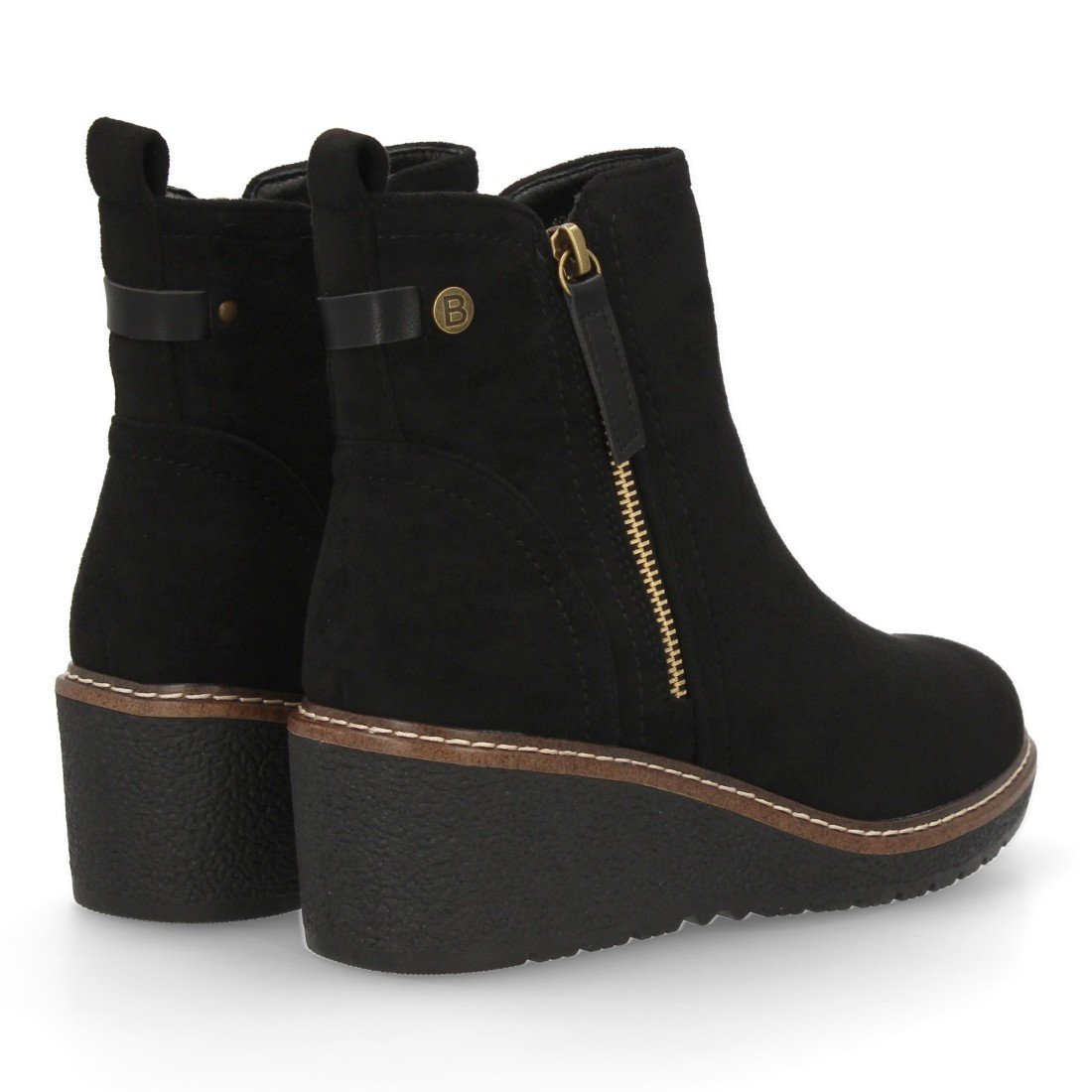 Botín de cuña para mujer, cómodo y diseño elegante. Detalles de costura y doble cremallera