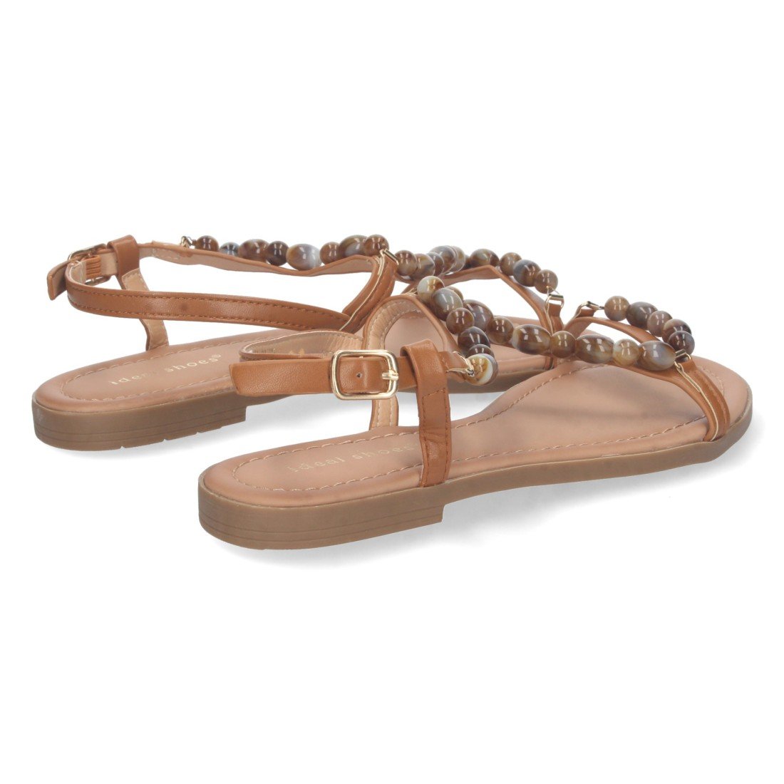 Sandalia Plana para Mujer, Comoda, Tira Cruzada con Avalorios, con Cierre de Hebilla en el Tobillo