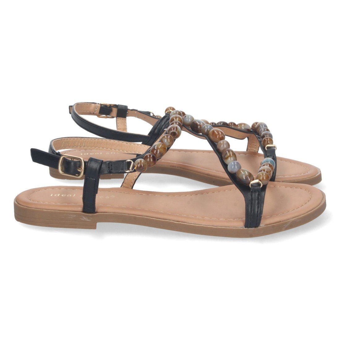 Sandalia Plana para Mujer, Comoda, Tira Cruzada con Avalorios, con Cierre de Hebilla en el Tobillo