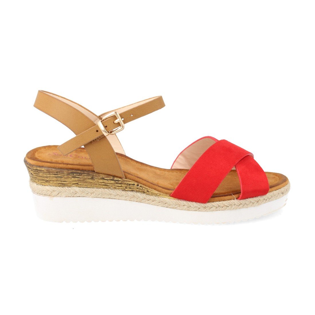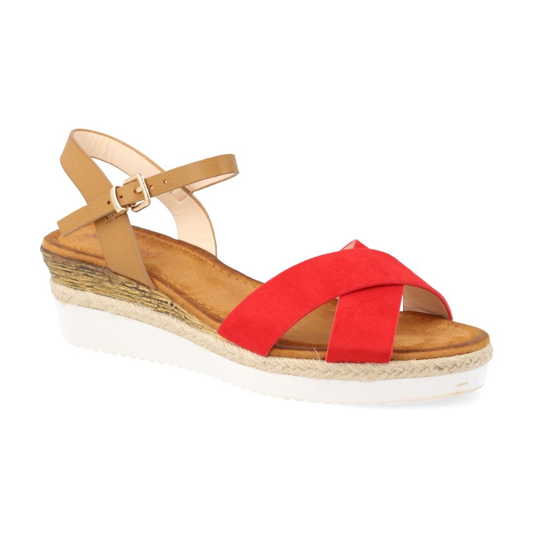 Sandalia de palas cruzadas con cuña con textura de yute y cierre de hebilla en el tobillo. Altura: 4 cm.