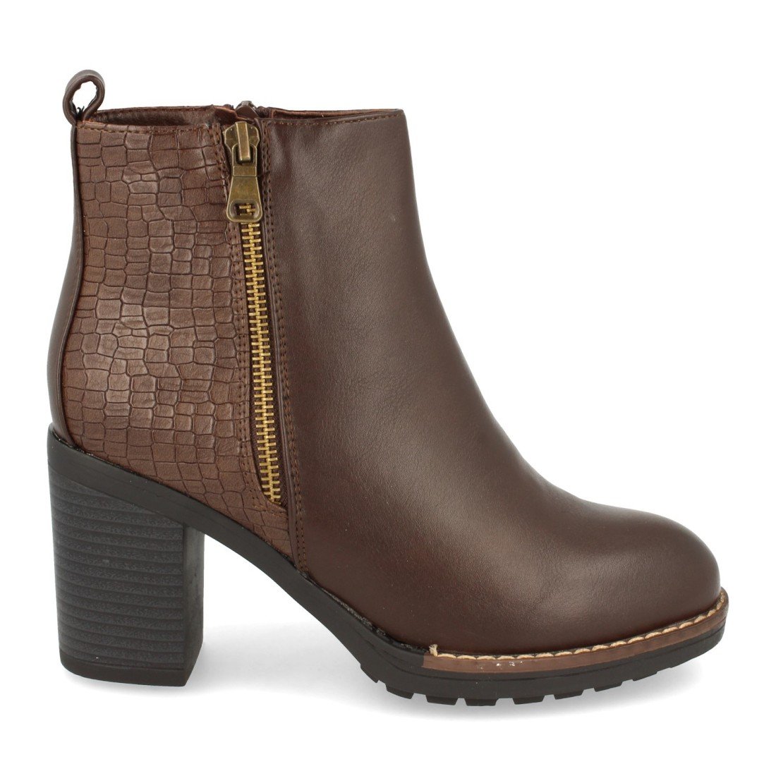 Botin de Tacon paraa Mujer, con Estampado de Cocodrilo en Talon, Cierre de Cremallera, Otoño Invierno 2020
