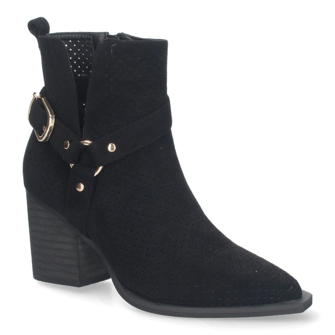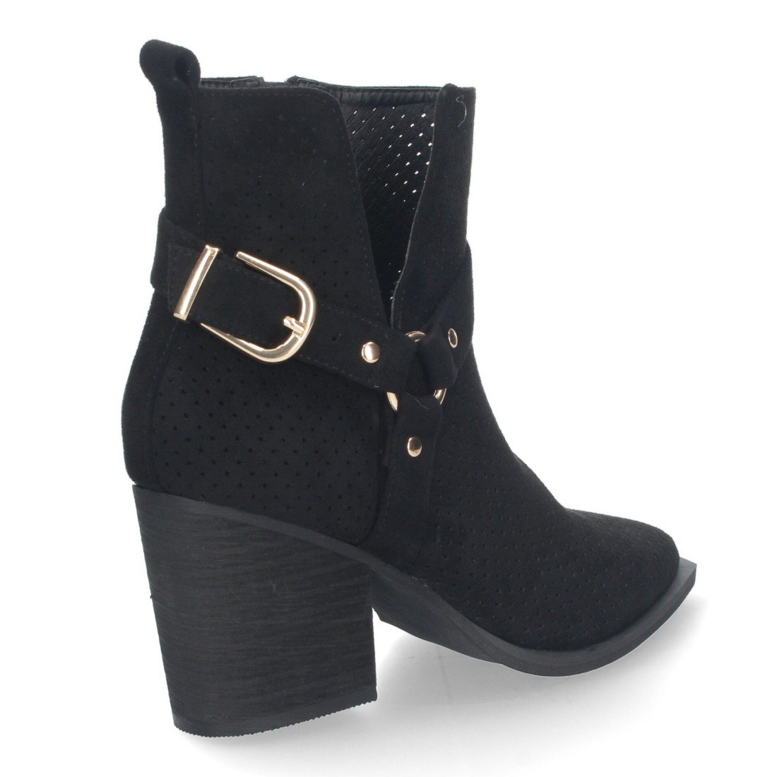 Botines de Mujer con Tacón Campero Elegantes, Diseño Perforado, Cierre de cremallera, Cómodos.