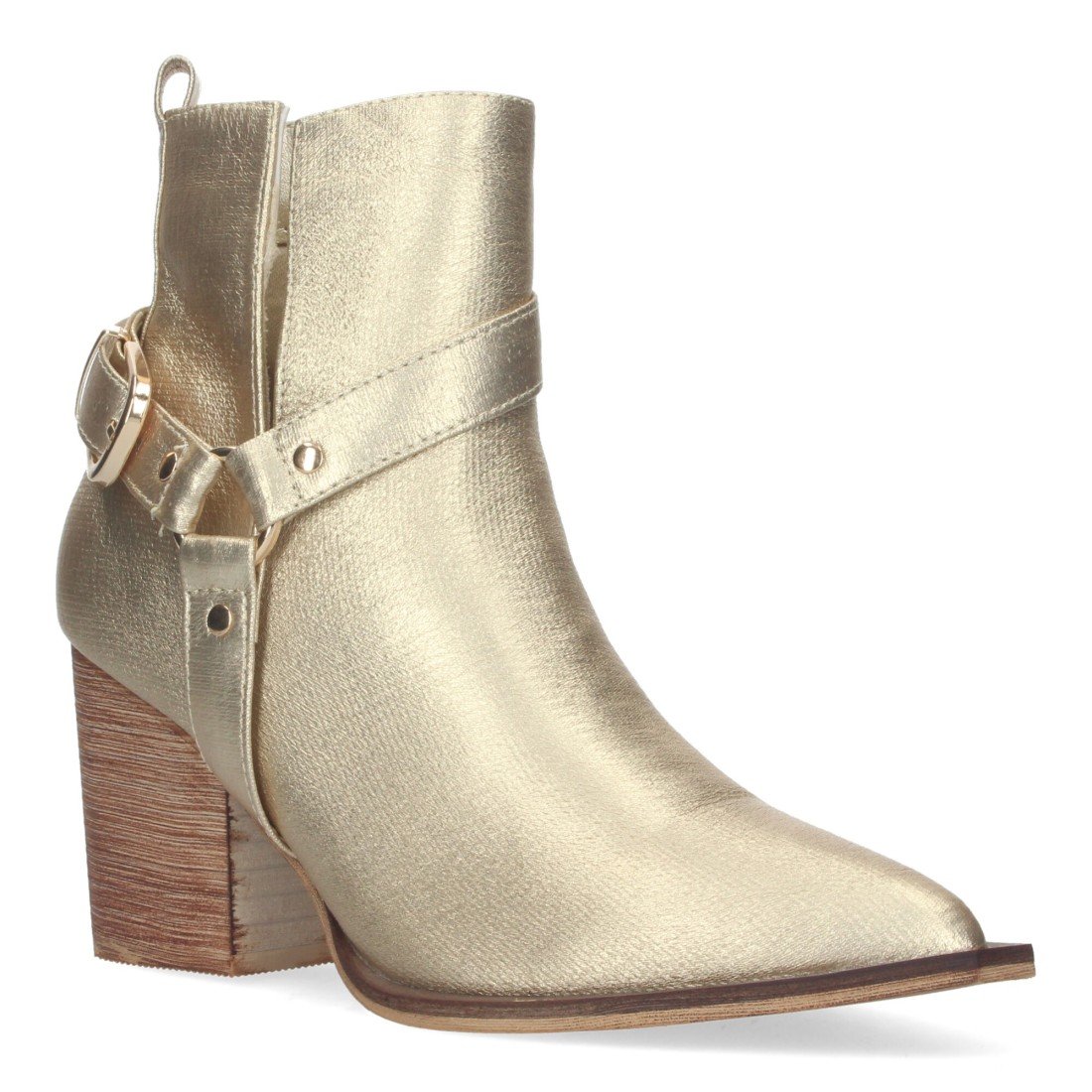 Botines de Mujer con Tacón Campero, Elegantes con Hebilla, Punta Fina y Cierre de Cremallera lateral.