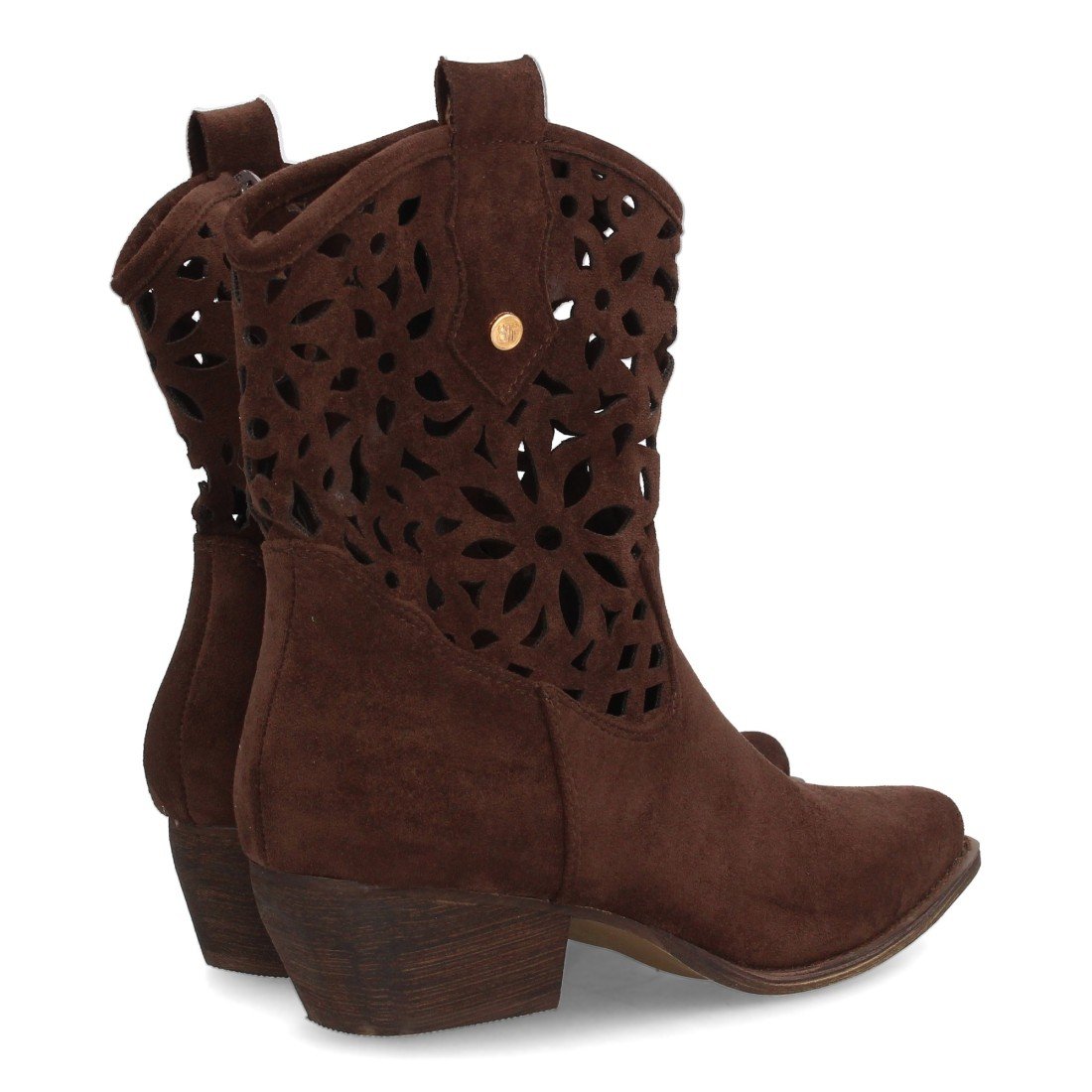 Botín cowboy para mujer, diseño calado en la caña, toque artesanal y distintivo. Tacón bajo y suela flexible. Troquelado con transpiración, ideal para looks de entretiempo.