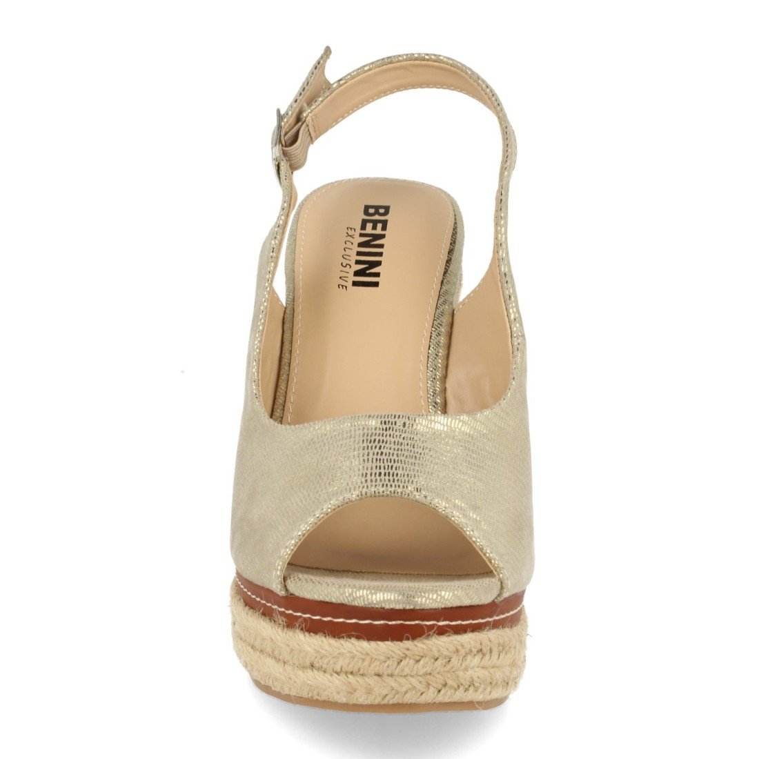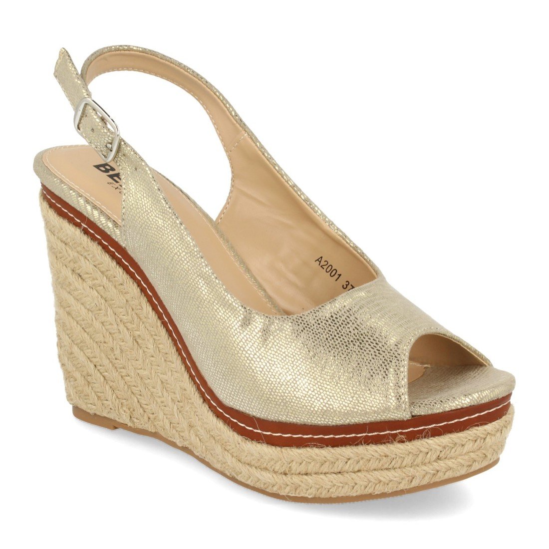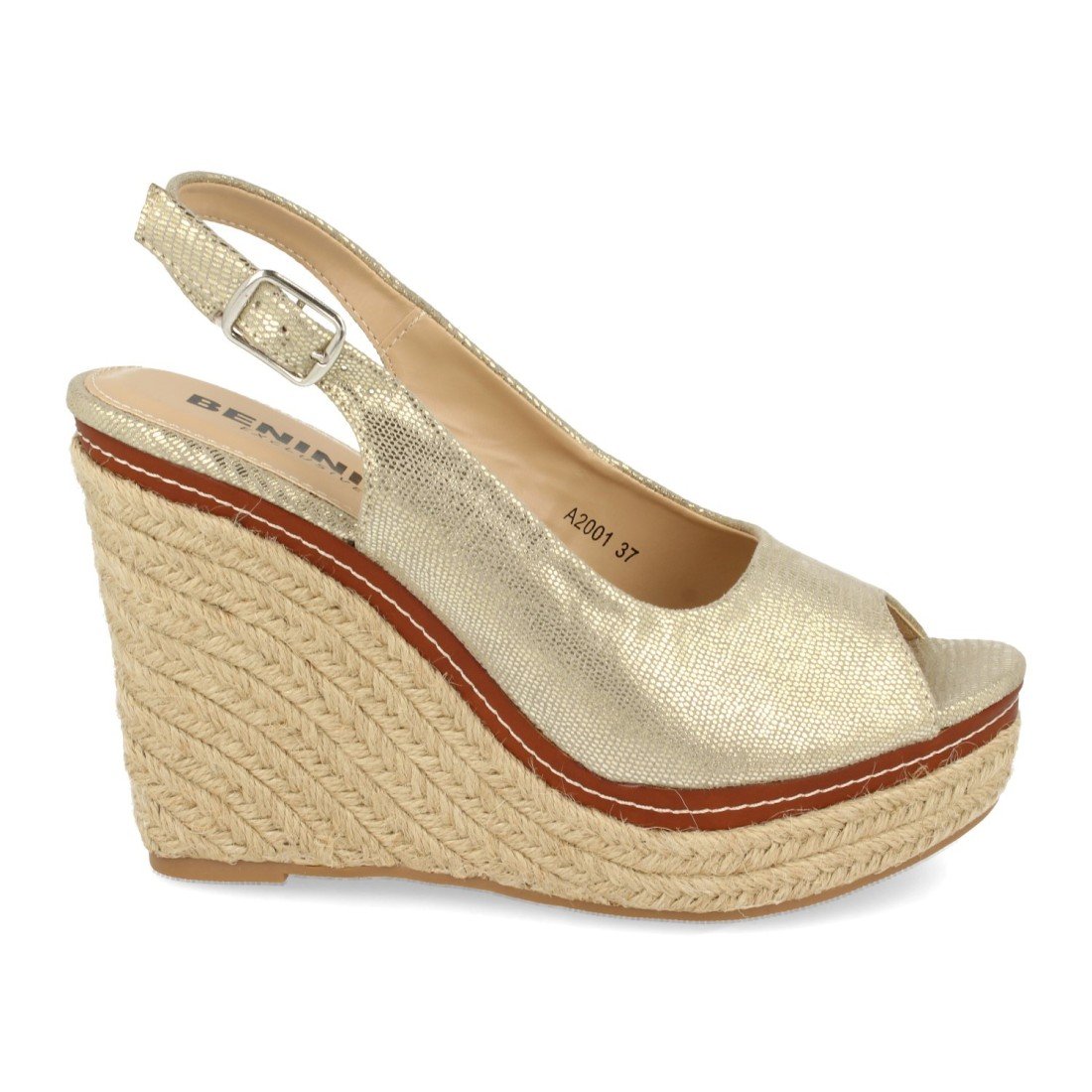 Sandalia de Cuña para Mujer, Detalle de Tira Cosida en Plataforma de Yute, Lateral Cerrado, y Cierre de Hebilla en el Tobillo Primavera Verano 2020