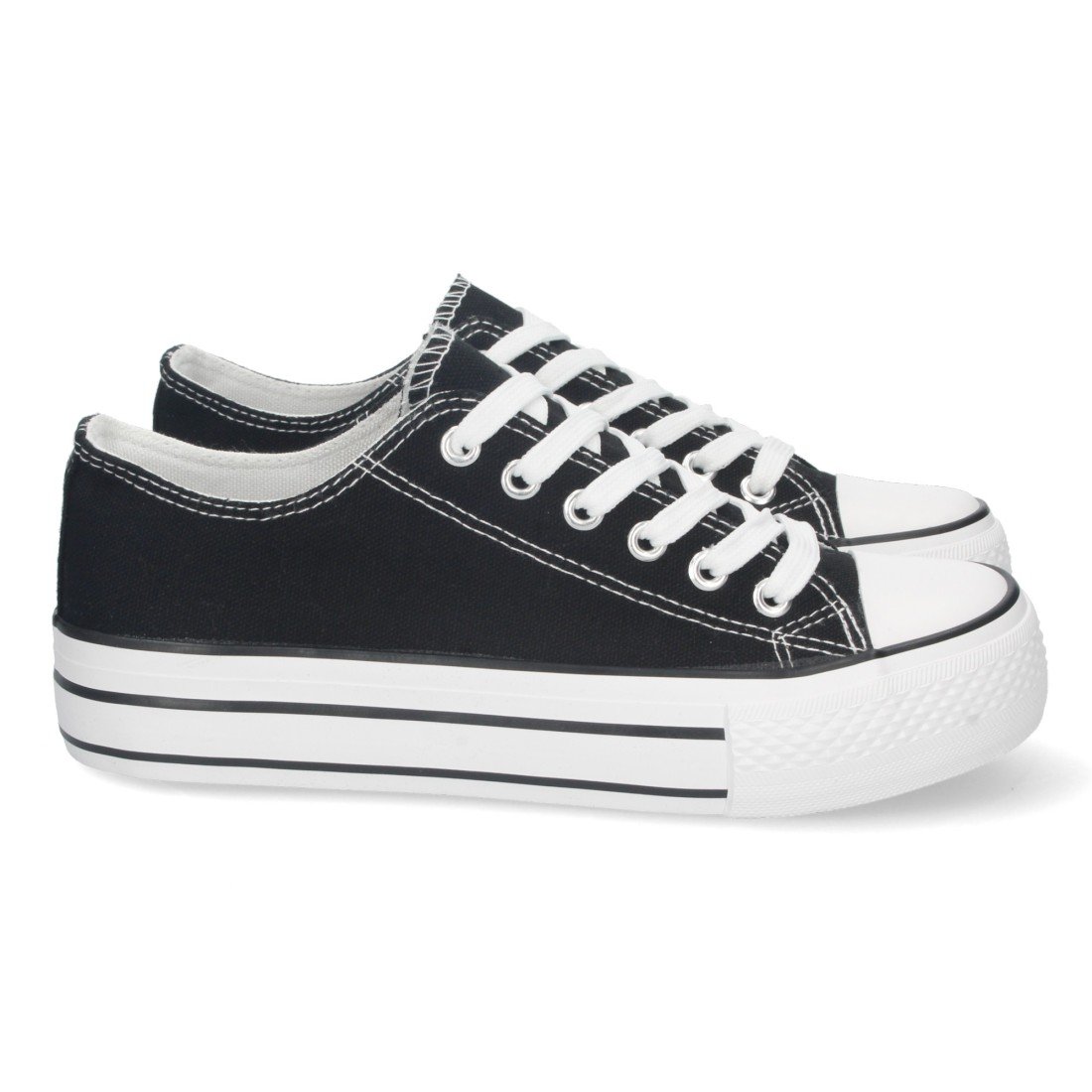 Zapatilla Plana para Mujer, de Doble Suela, Comoda, con Material de Lona, Estilo Bamba Casual, y Cierre de Cordones