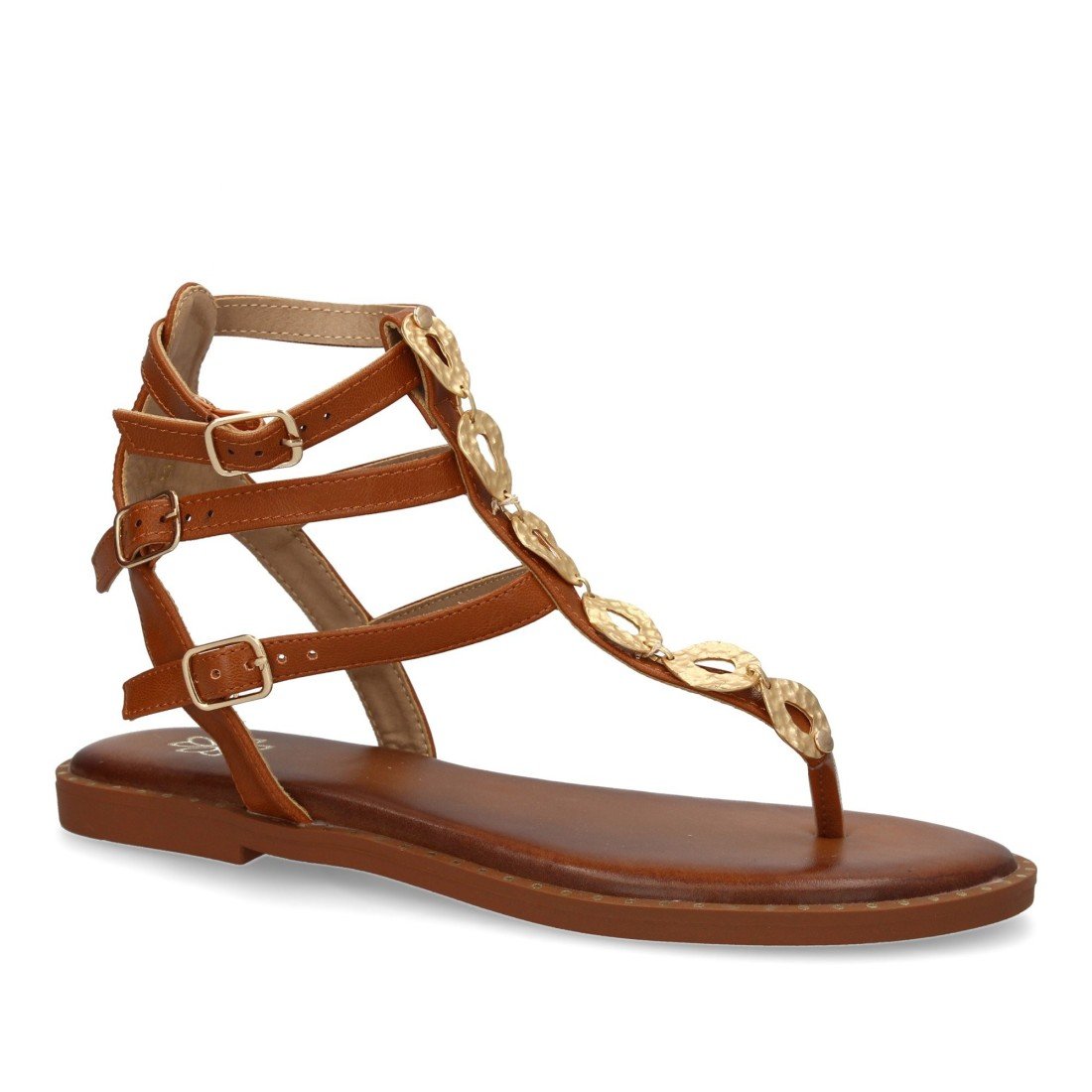 Sandalias planas para mujer, comodas y elegantes, diseño moderno con multiples correas y detalles metalicos