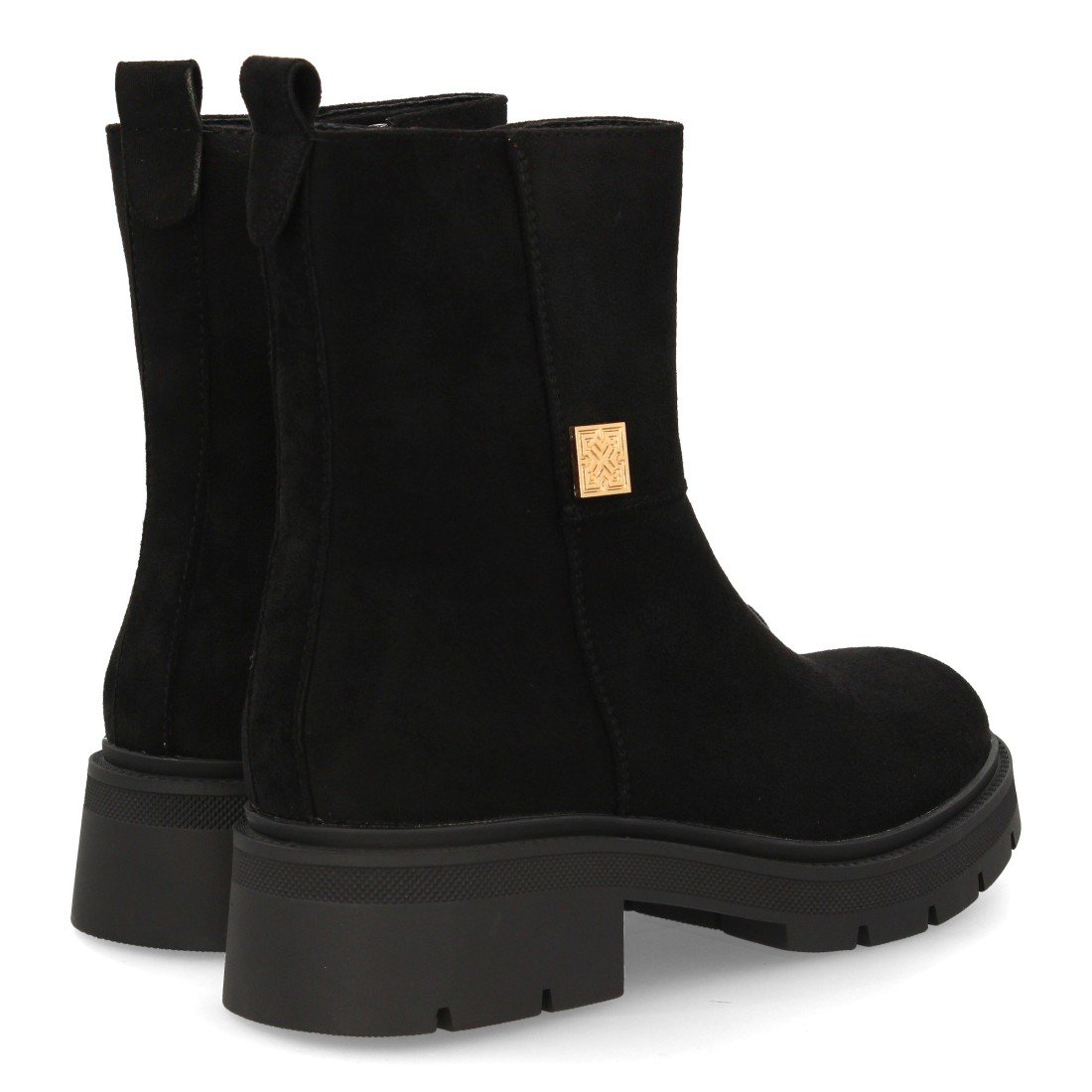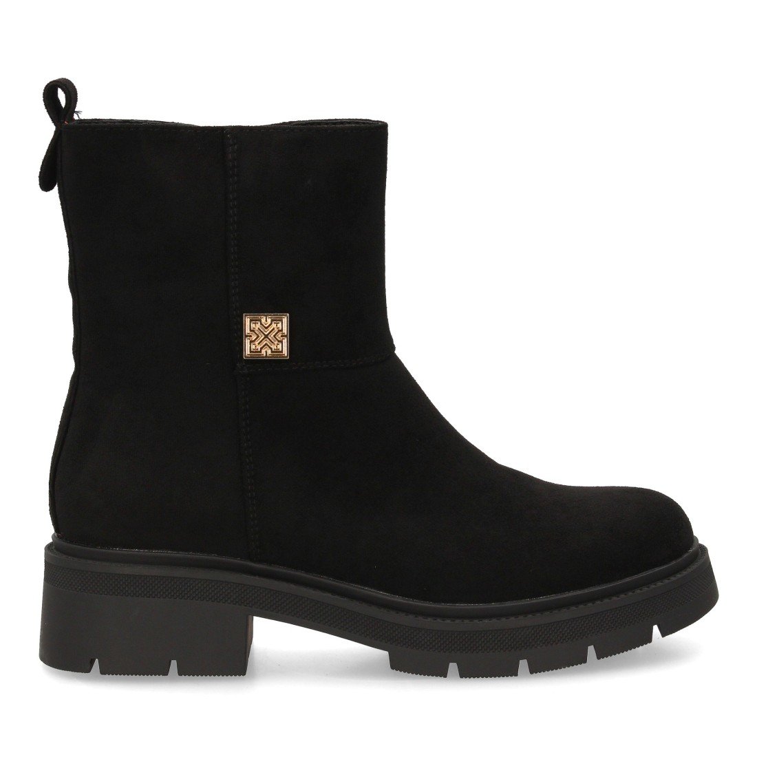Botín moderno con estampado liso.Incorpora un adorno metálico lateral. Suela robusta con plataforma. Ideal para mujer en temporada Otoño Invierno. Cierre de cremallera
