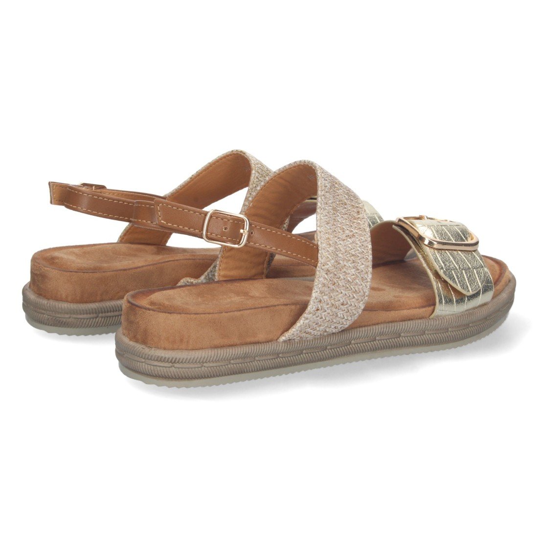 Sandalia Plana para Mujer, Comoda para Uso Diario, con Doble Pala, Talón Abierto, y Cierre de Hebilla