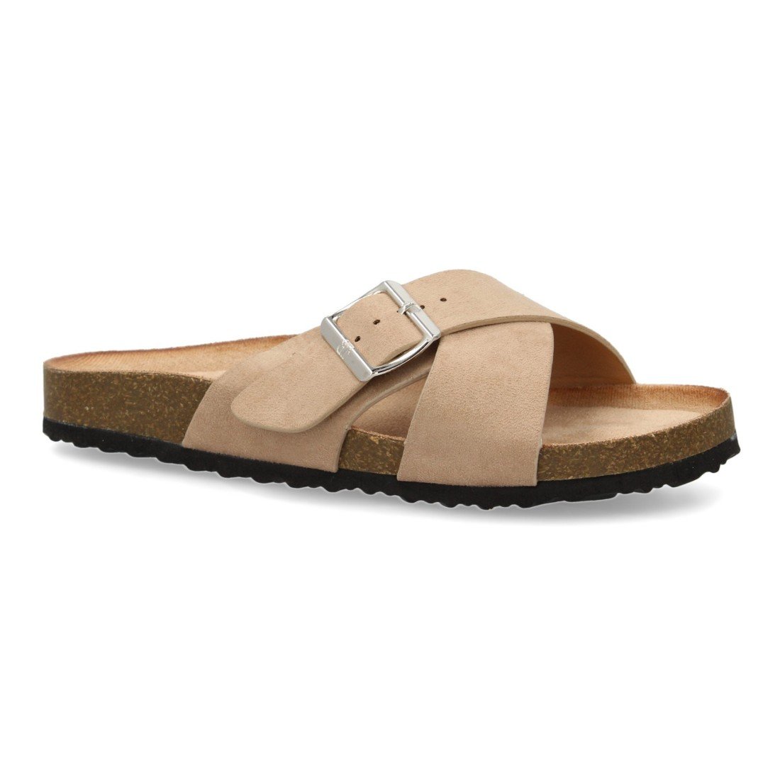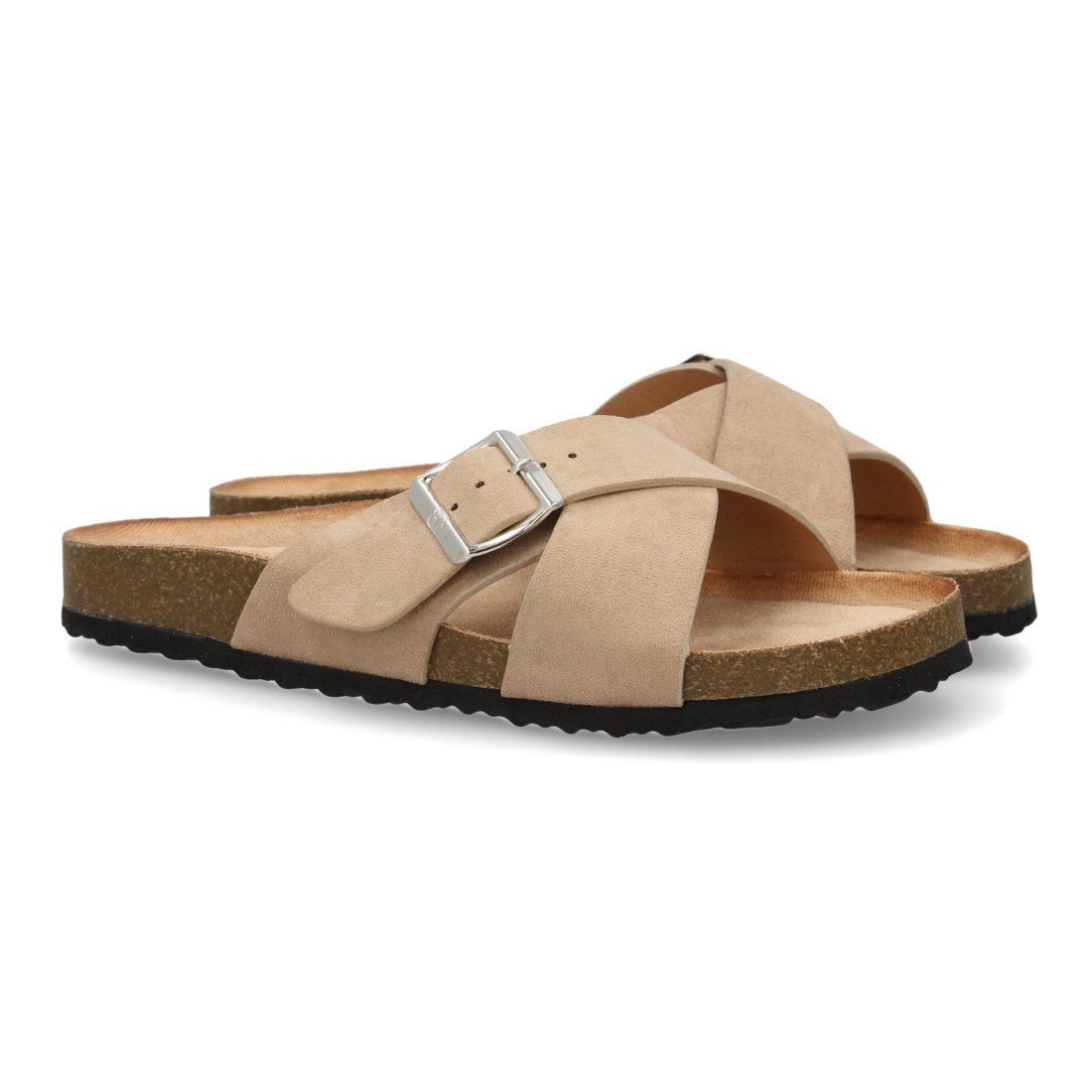 Sandalia Plana de Mujer, Pala entrecruzada, con Planta Anatomica de Bio, y Hebilla, Primavera Verano