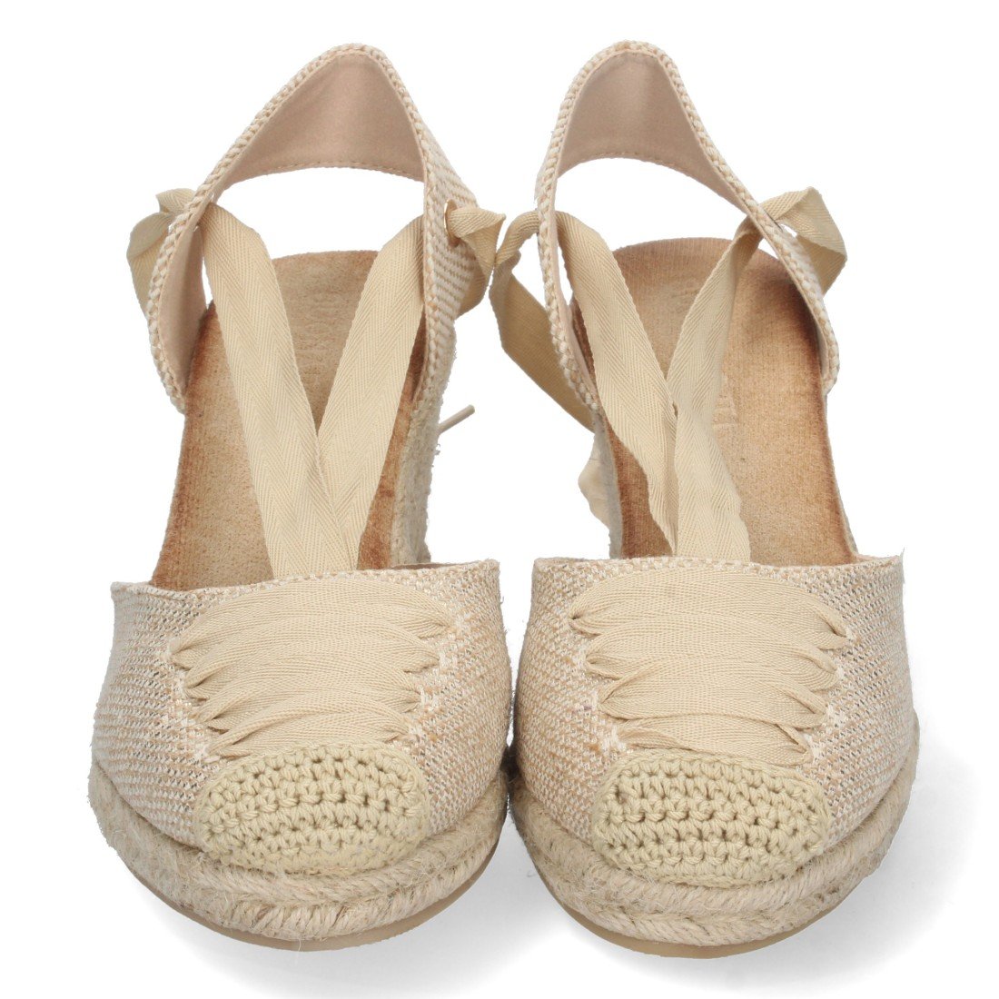Sandalia de Cuña para Mujer, Forrado de Yute, con Pala Cerrada, y Cierre de Cordones, Primavera Verano 2022