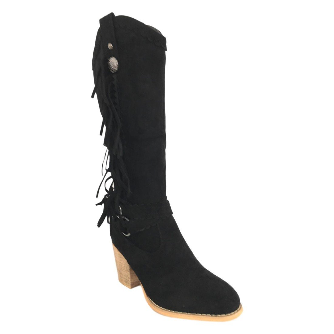 Bota Mujer Campera con Flecos y Hebilla