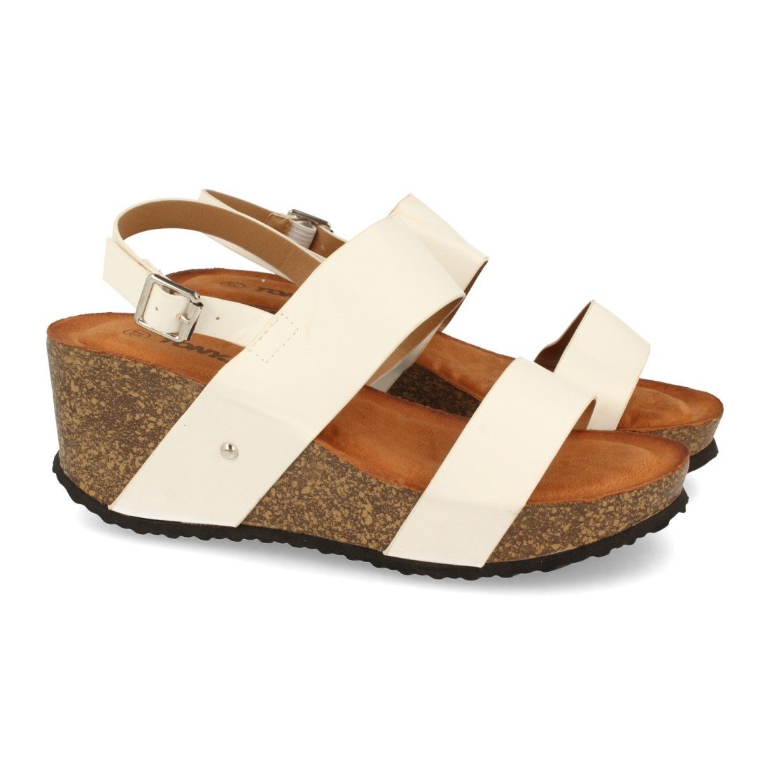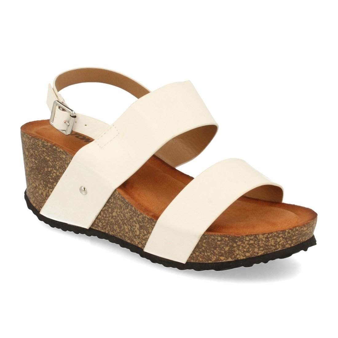 Sandalia de Cuña, para Mujer, con Planta Comoda Anatomica, Doble Pala, y Cierre de Hebilla, Primavera Verano 2021