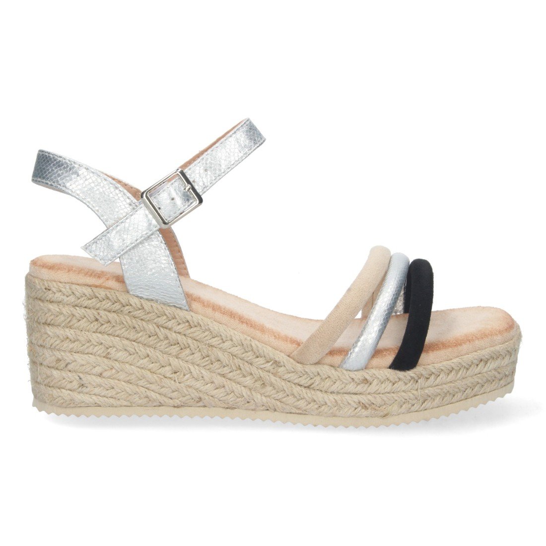 Sandalia de Cuña para Mujer, Comoda, Forrada de Yute, con Palas Multicolor, y Cierre de Hebilla, Primavera Verano 2023