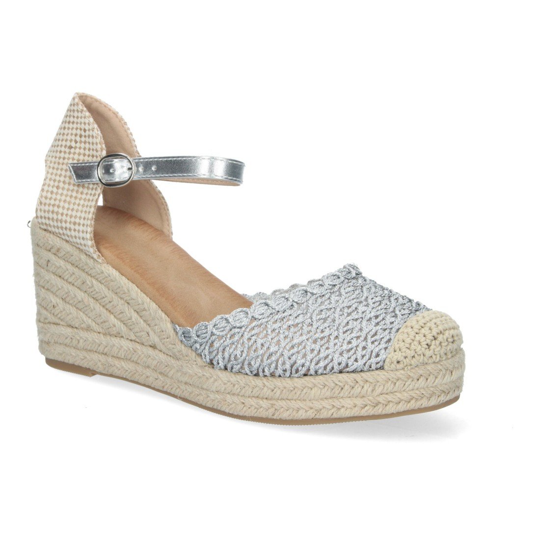 Sandalia de Cuña para Mujer, Forrado de Yute, Pala Trenzada, y Cierre de Hebilla.