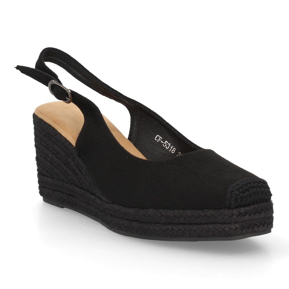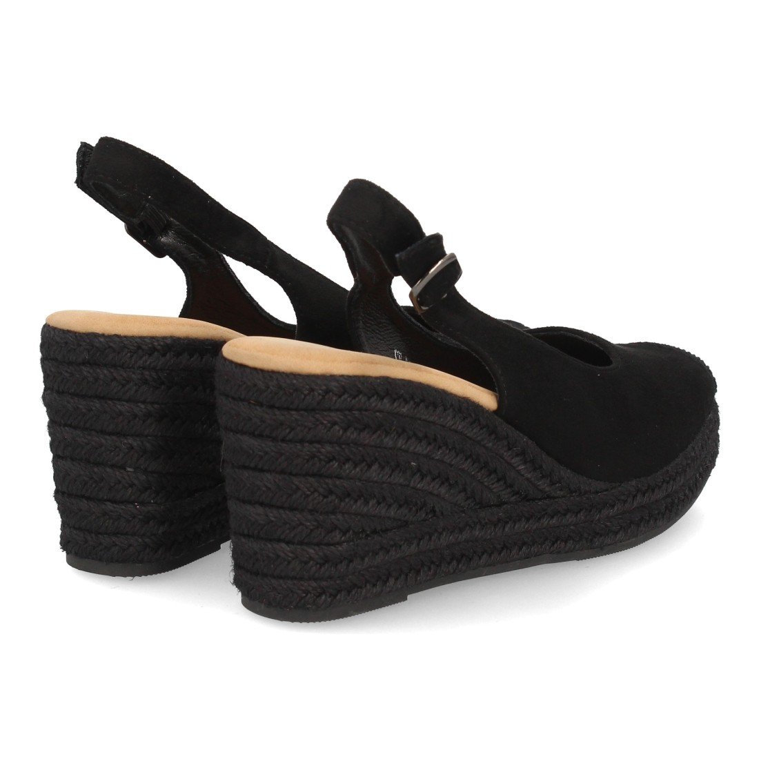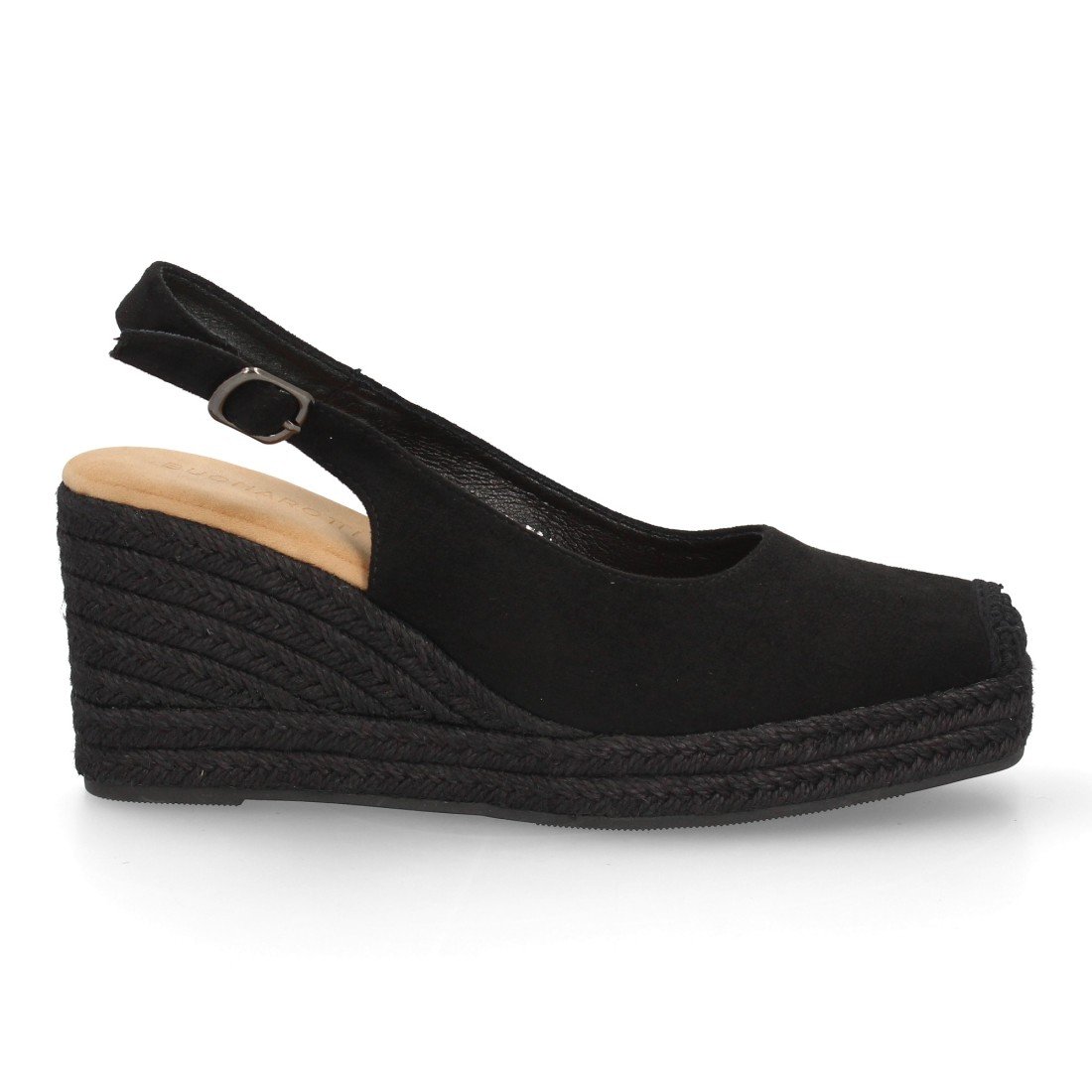 Alpargata de mujer con cuña y plataforma, monocolor, parte delantera cerrada, talón abierto, cuña de yute trenzado ligera y cómoda para la Temporada verano.