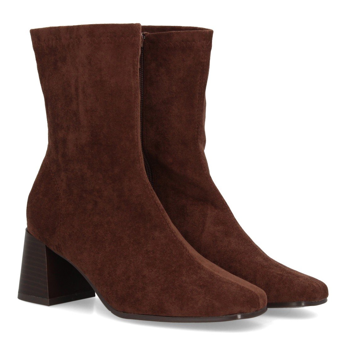 Bota calcetín de caña media con acabado elástico y diseño minimalista. Punta cuadrada, cierre de cremallera, ajuste cómodo y estilizado. Ideal para mujer temporada otoño invierno.