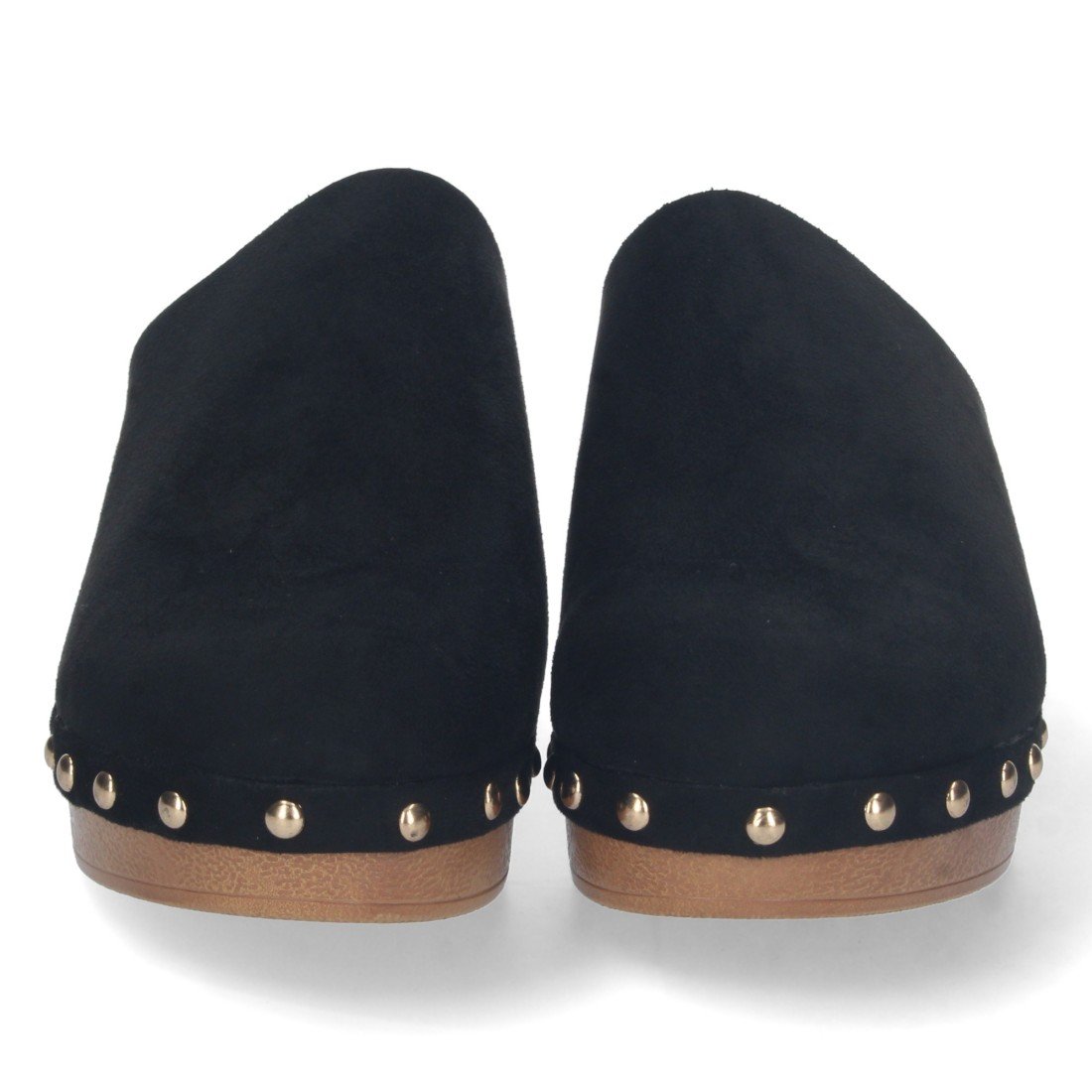 Sandalia de Tacón para Mujer, Comoda, Material de Imitacion a Madera, con Pala Cerrada, Remaches, y Talon Abierto