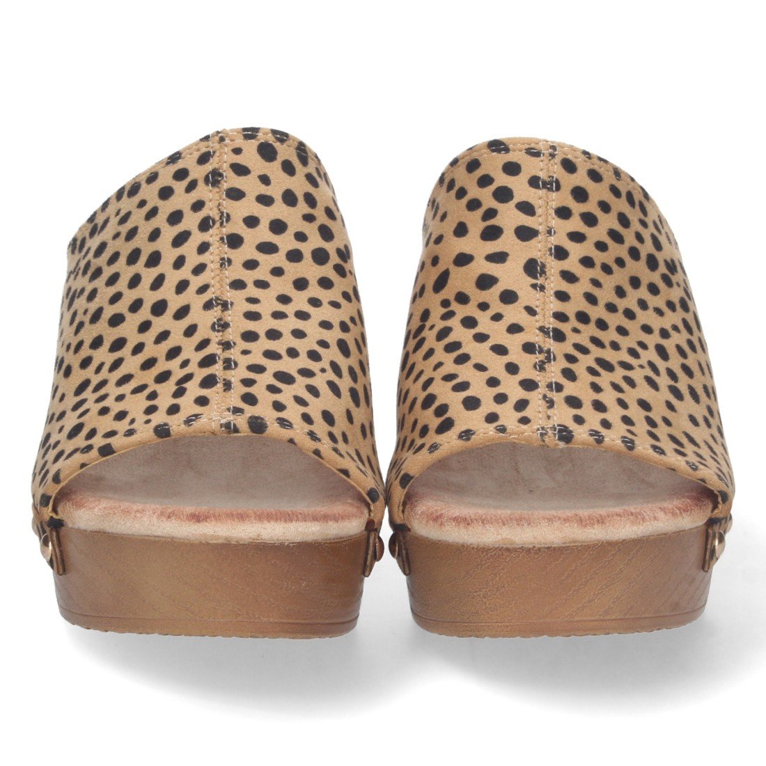Sandalia de Tacón para Mujer, Comoda, Material de Imitacion a Madera, con Pala con Remaches, y Talon Abierto