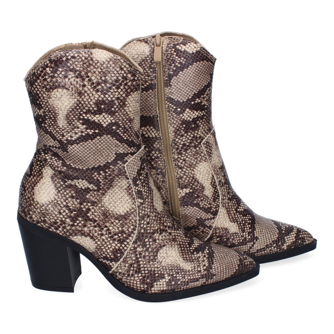 Botín de Tacón para Mujer, Comodos y Elegantes, Diseño Moderno con Adornos de Costura y Punta Fina, Cierre de Cremallera Lateral.