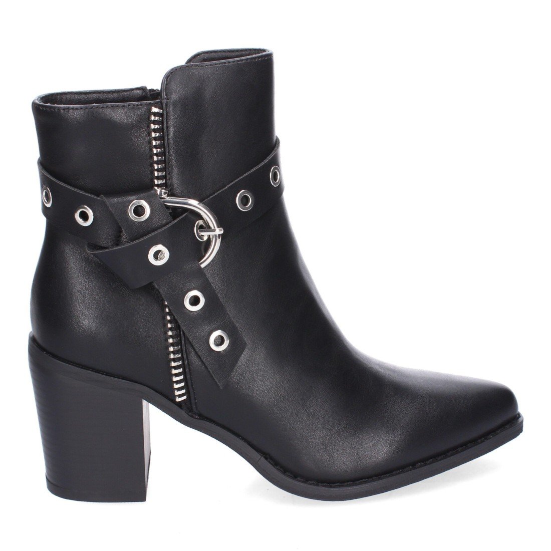 Botines de Tacon para Mujer, Comodos y Elegantes con Hebilla Decorativa y Cierre de Cremallera Lateral y Puntera Fina.