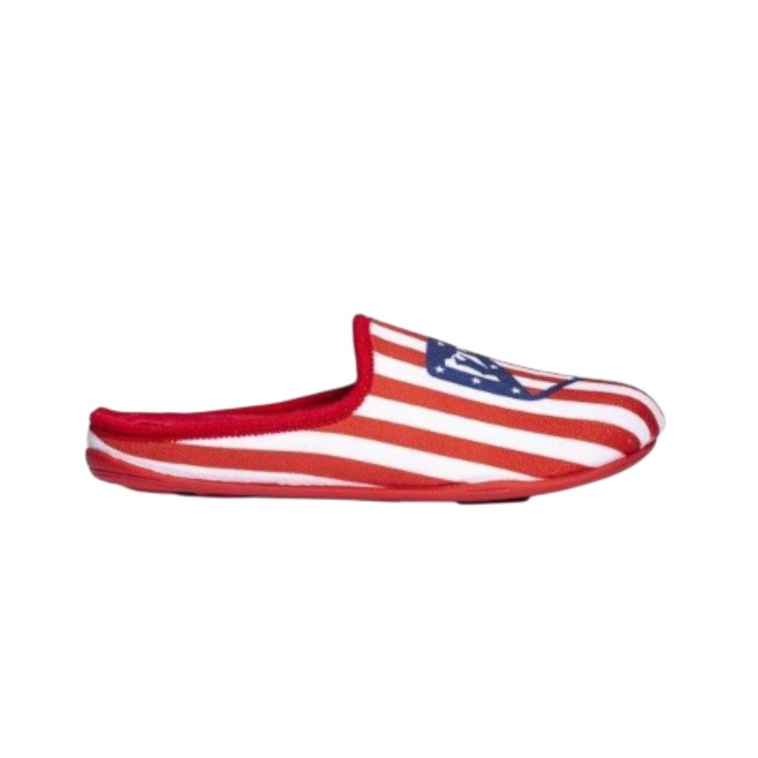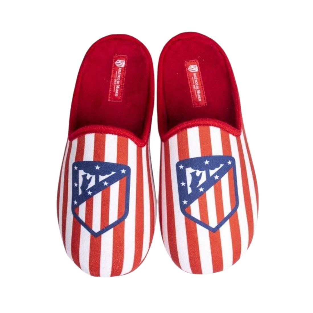 Zapatillas infantiles de estar por casa del FC Atlético de Madrid con diseño clásico con el escudo oficial del club, fabricadas en España. Suela antideslizante.