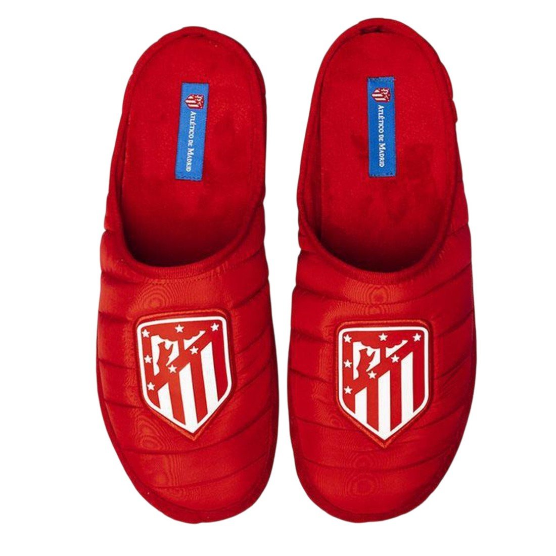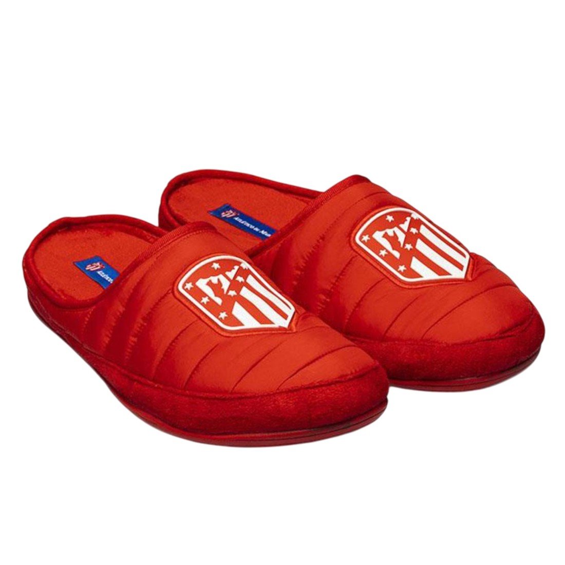 Zapatillas de estar por casa del FC Atletico de Madrid con diseño clásico con el escudo oficial del club, fabricadas en España con materiales resistentes. Suela antideslizante.