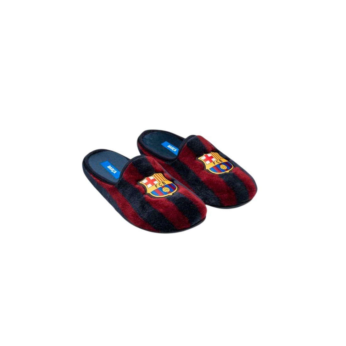 Zapatillas de estar por casa del FC Barcelona con diseño clásico con el escudo oficial del club, fabricadas en España con materiales resistentes. Suela antideslizante, lavables.