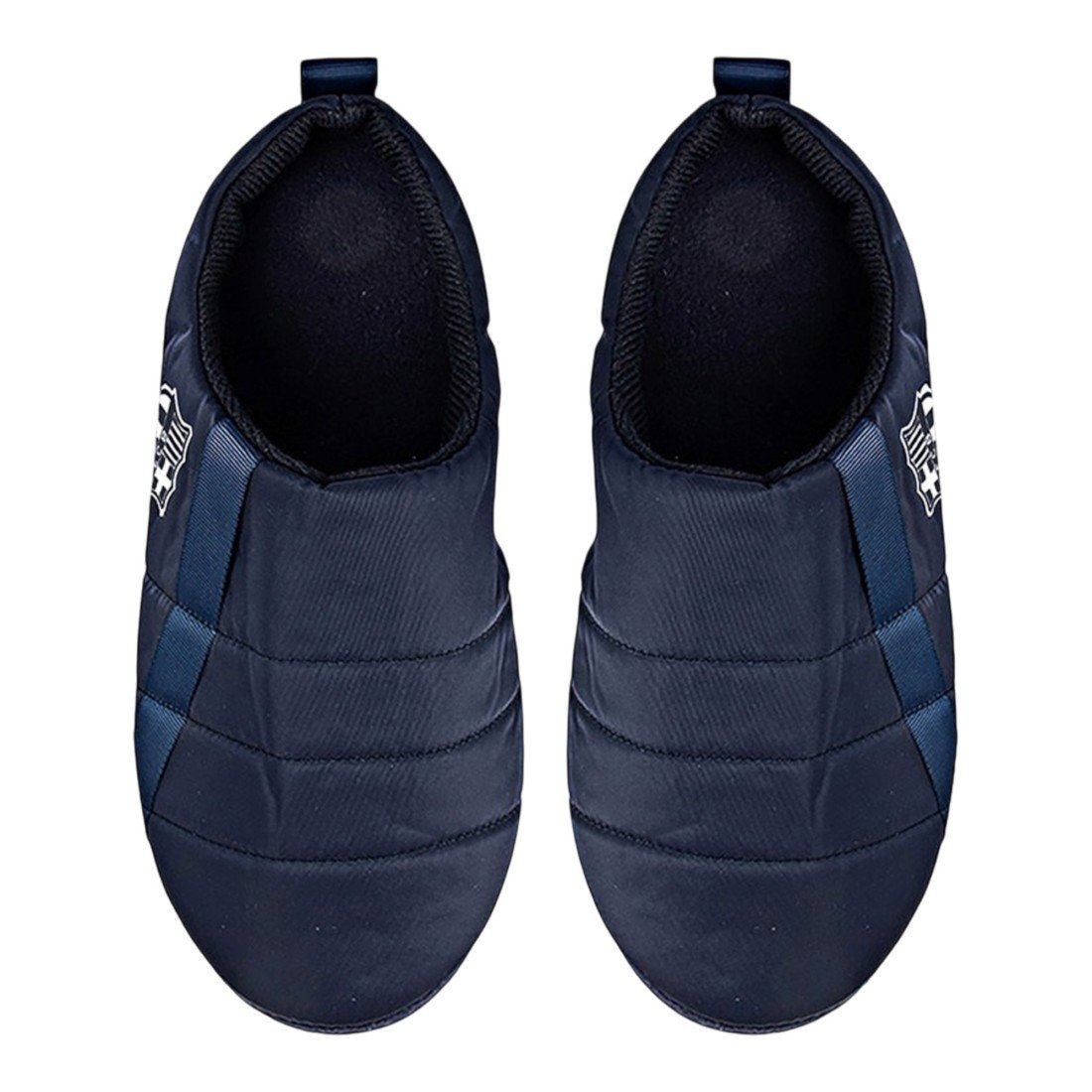 Zapatillas de estar por casa del FC Barcelona con diseño clásico con el escudo oficial del club, fabricadas en España con materiales resistentes. Suela antideslizante, lavables.