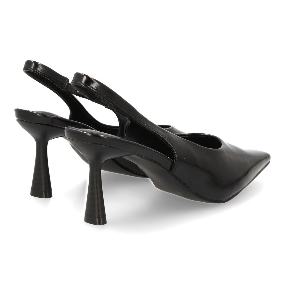 Zapato de salón destalonado con punta y tacon fino. Estampado liso, cierre eástico. Ideal para mujer en temporada de Otoño invierno.