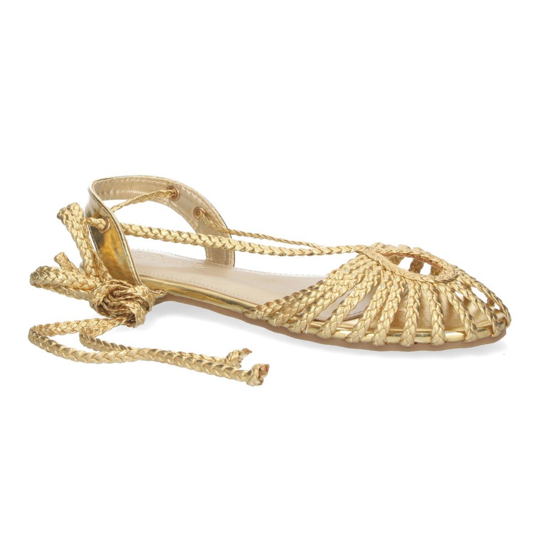 Sandalia cangrejera plana para mujer, cómodas, Diseño Elegante de Punta Cerrada y Cintas Anudables al tobillo.