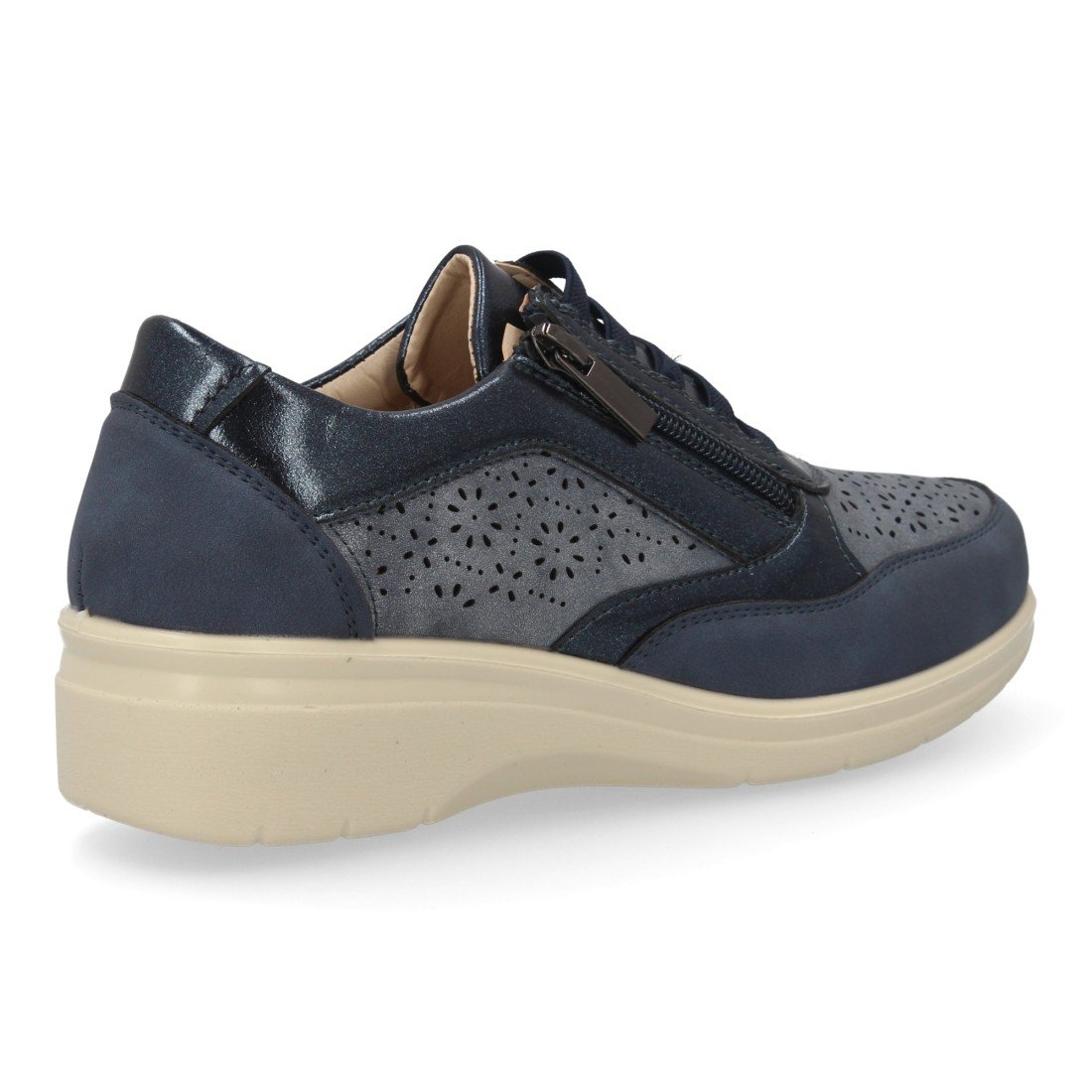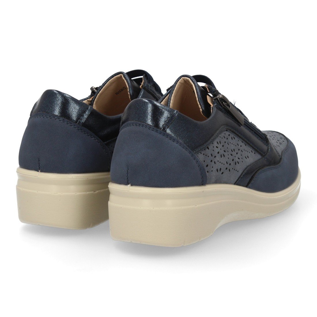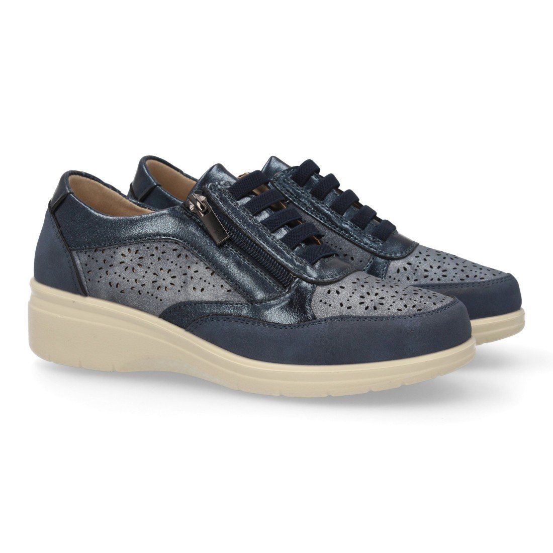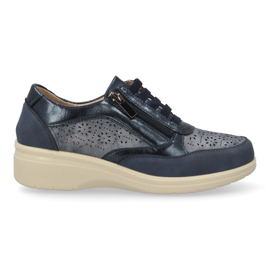 Zapatilla casual de mujer, muy comodas con cordones elásticos y cierre de cremallera seguro. Cuña ligera, con calados. Ideales para Primavera-Verano.