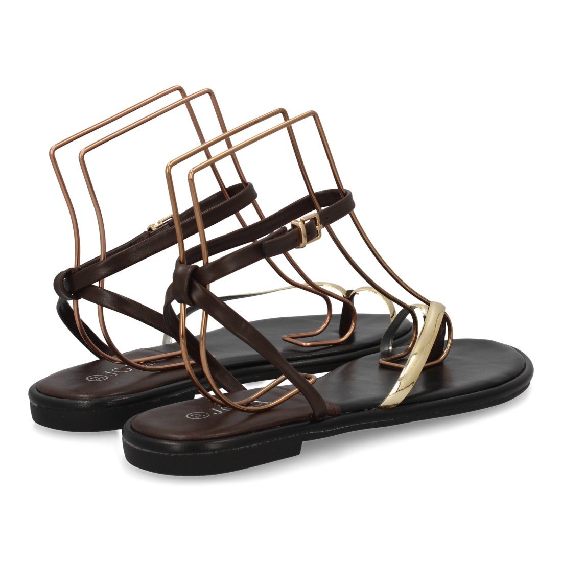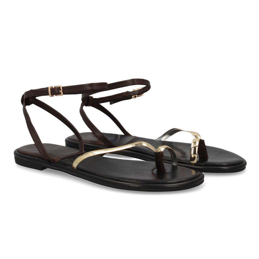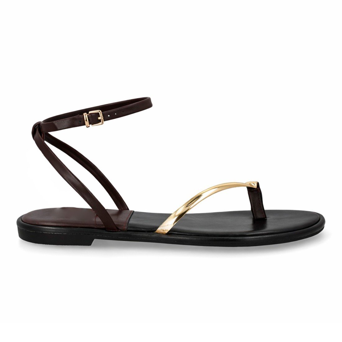 Sandalia plana de mujer con diseño elegante y minimalista, tiras finas que estilizan el pie. El cierre al tobillo con hebilla permite un ajuste seguro y cómodo. Ideal Verano.
