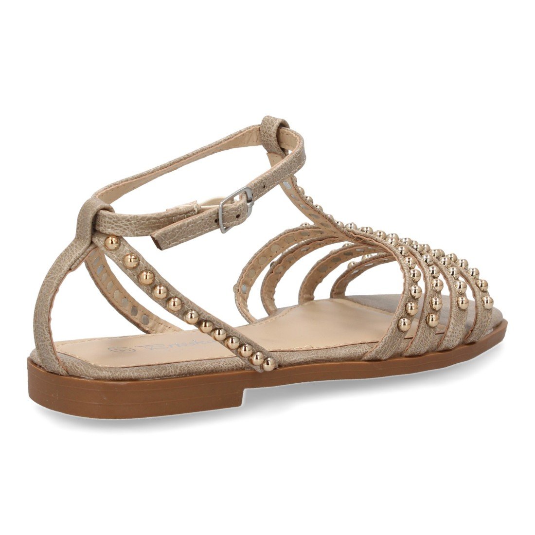 Sandalias planas de mujer, comodas y elegantes, diseño moderno con adornos brillantes, con cierre de hebilla ideales para primavera-verano.