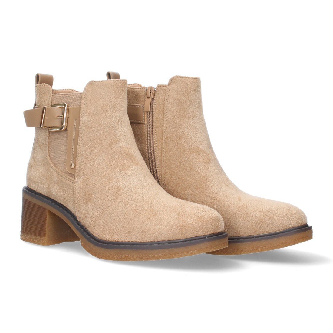 Botin de Tacon para Mujer, con material aterciopelado cierre de cremallera y tachuela en la caña.