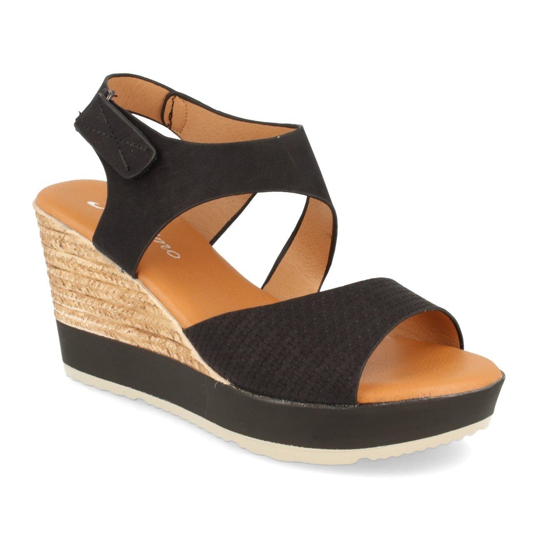 Sandalias de Mujer Ankle Strap con Cuña imitación a Yute, Suela Antideslizante, Pala Fina con Detalle Bordado y Cierre de Velcro. Primavera Verano 2020.