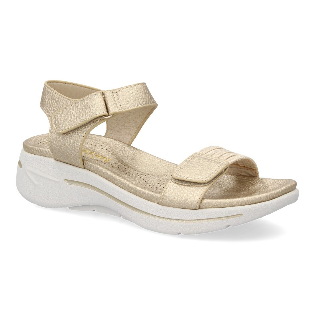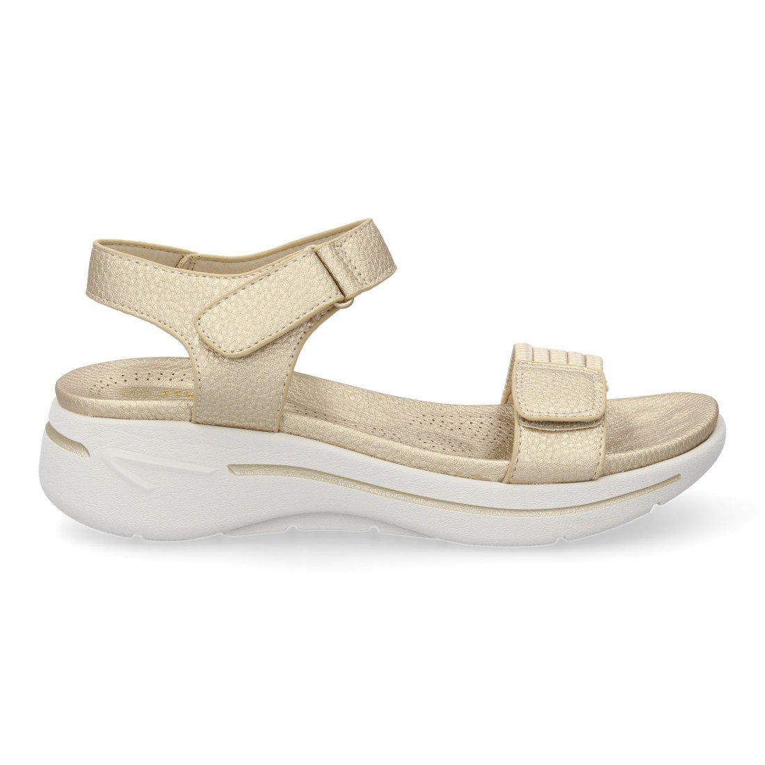 Sandalia plana de mujer diseño moderno ligero y comodo con doble cierre de velcro y tiras elasticas en la pala, ideales para primavera verano.