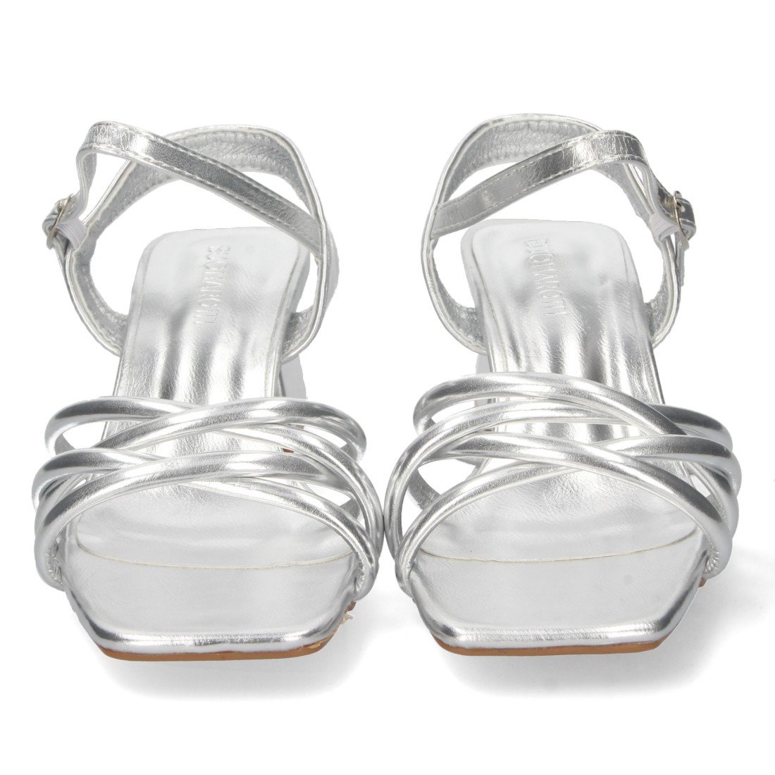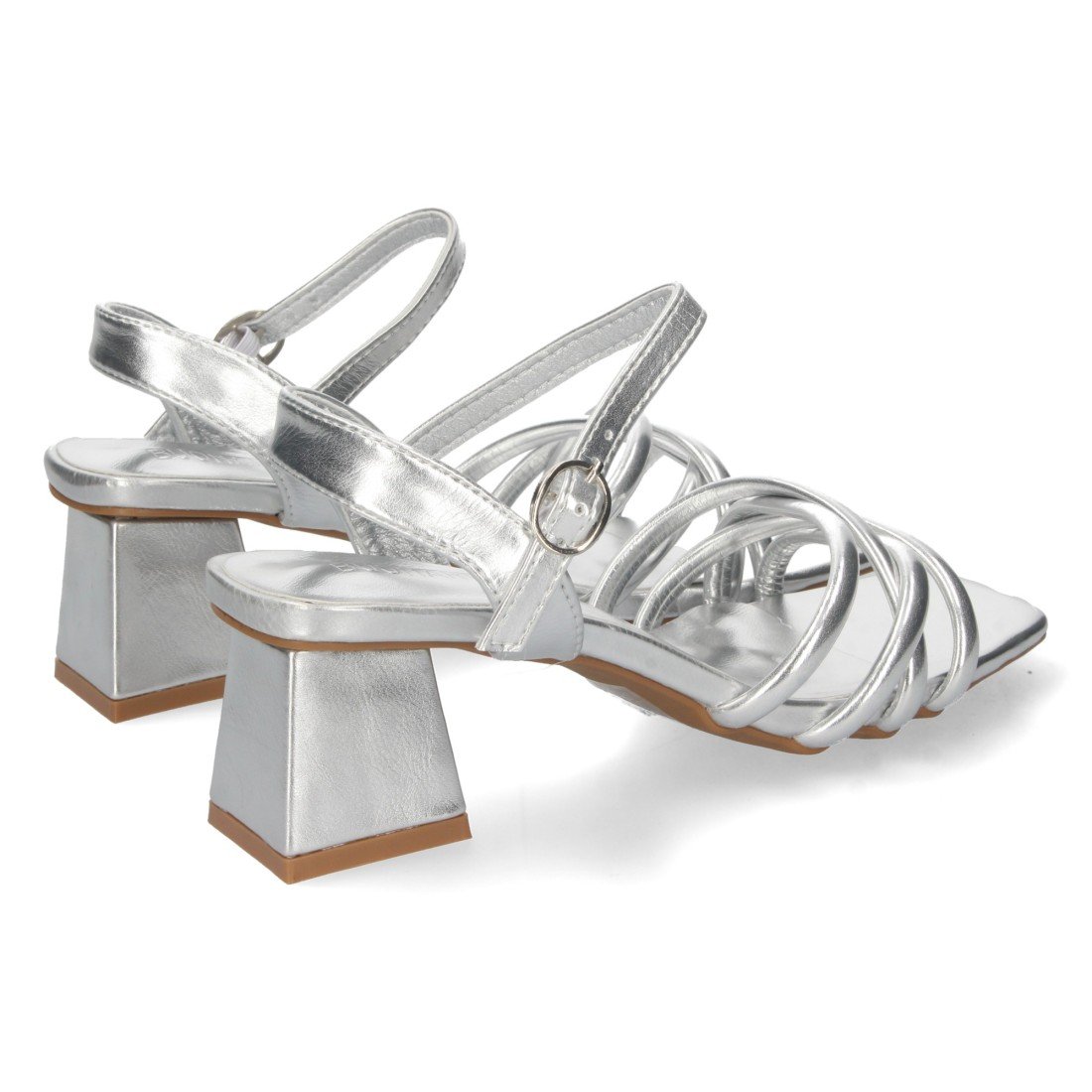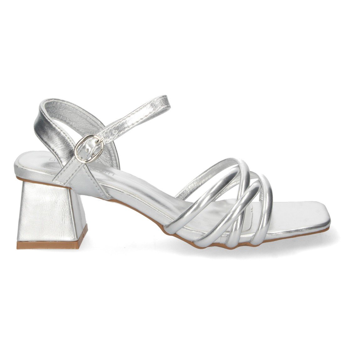 Sandalia de Tacón para Mujer, con Palas Finas Cruzadas, Tacón Cuadrado, y Cierre de Hebilla, Primavera Verano 2022