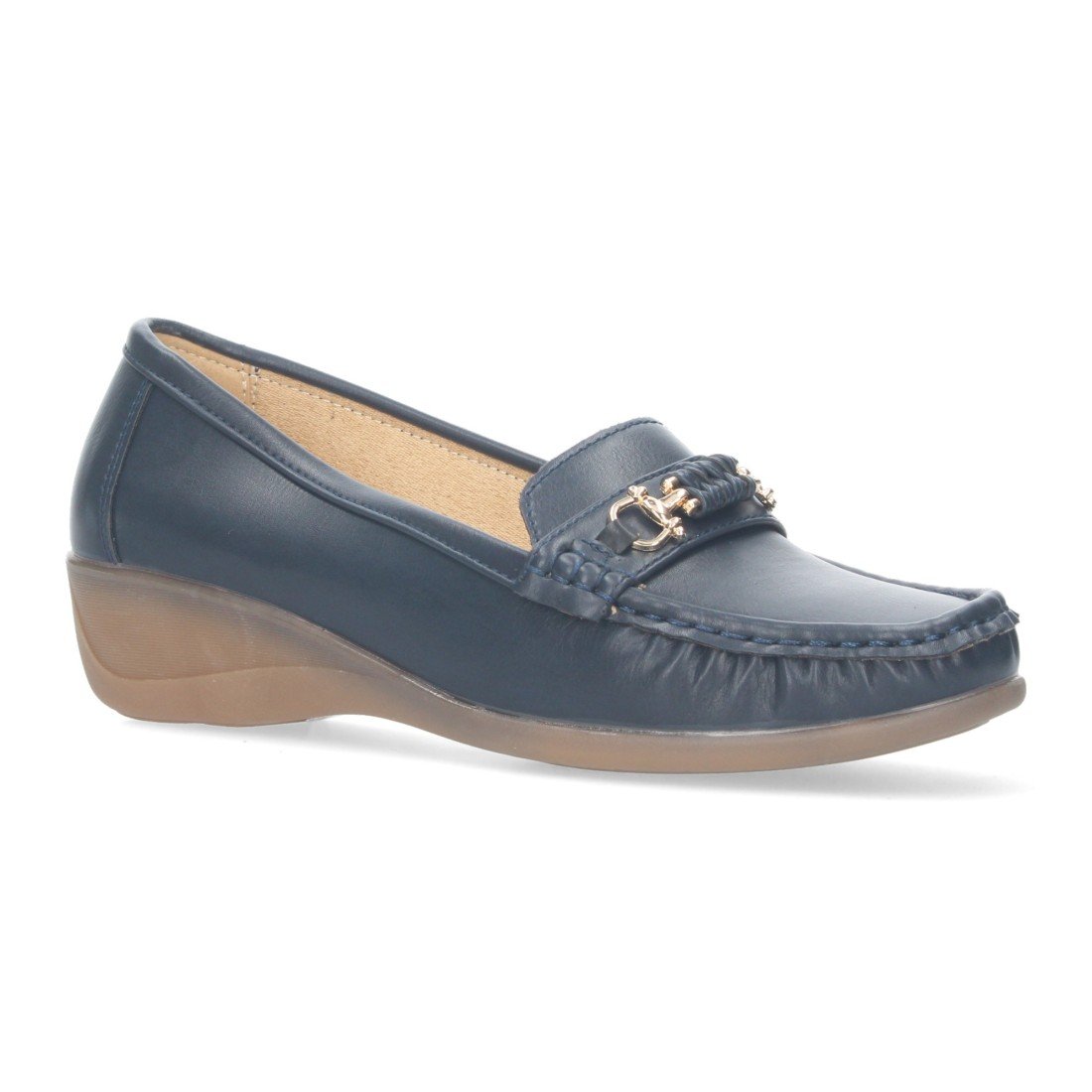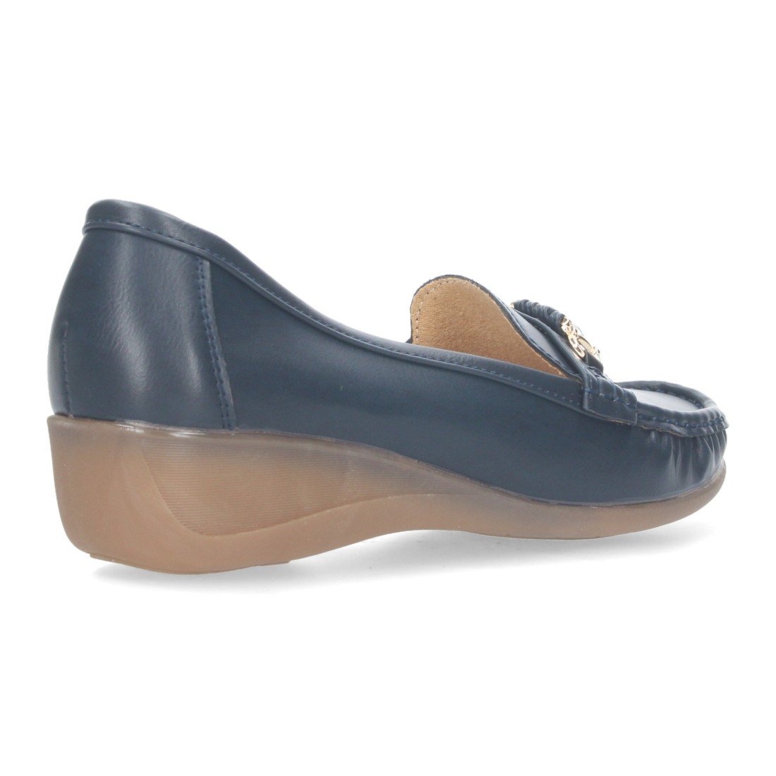 Mocasin con cuña de mujer, con detalle metalico en la pala.