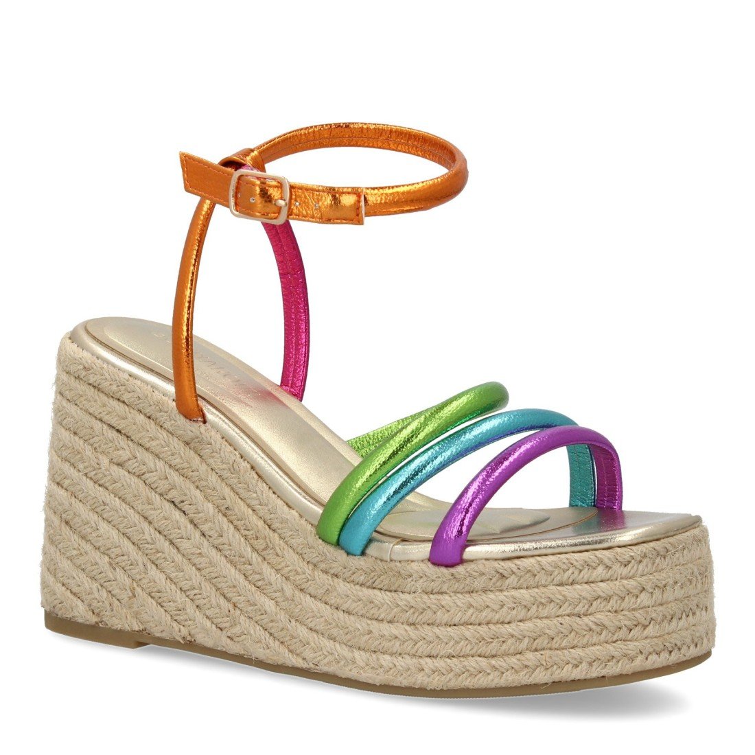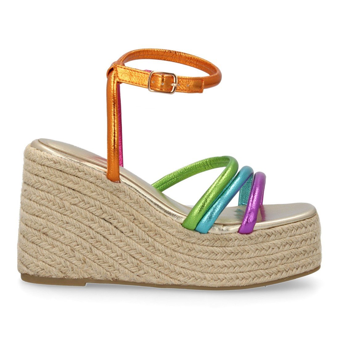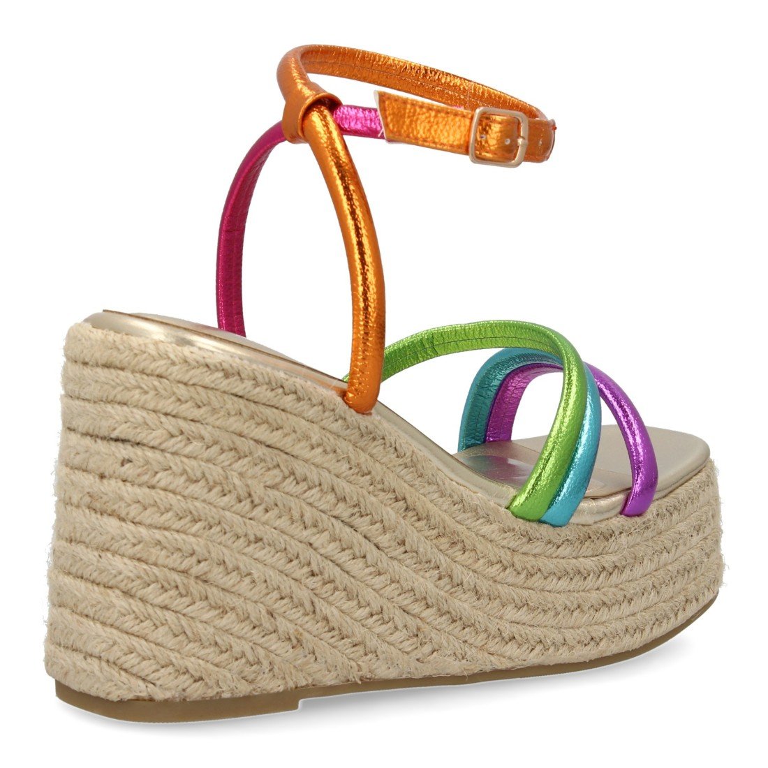 Sandalia de cuña de yute para mujer, diseño comodo y elegante con tiras cruzadas en la pala y cierre de hebilla, ideales para primavera verano.