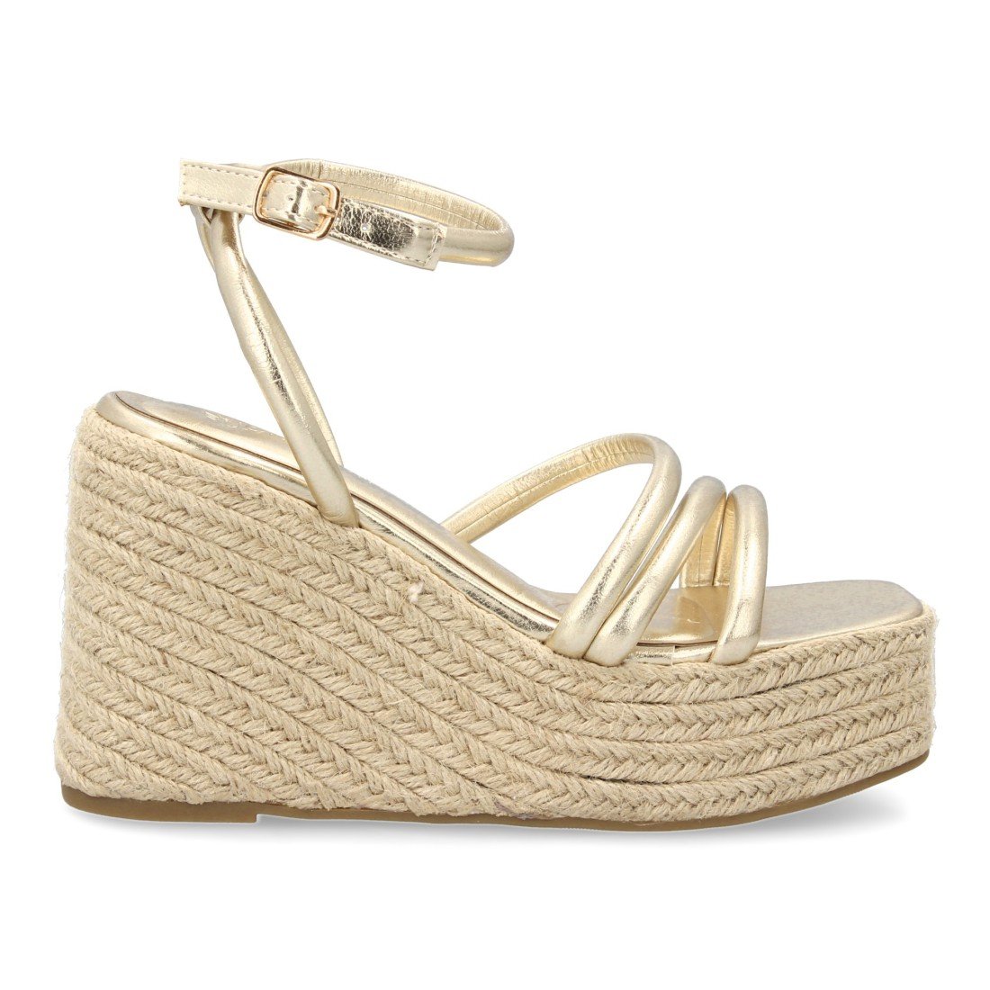 Sandalia de cuña de yute para mujer, diseño comodo y elegante con tiras cruzadas en la pala y cierre de hebilla, ideales para primavera verano.