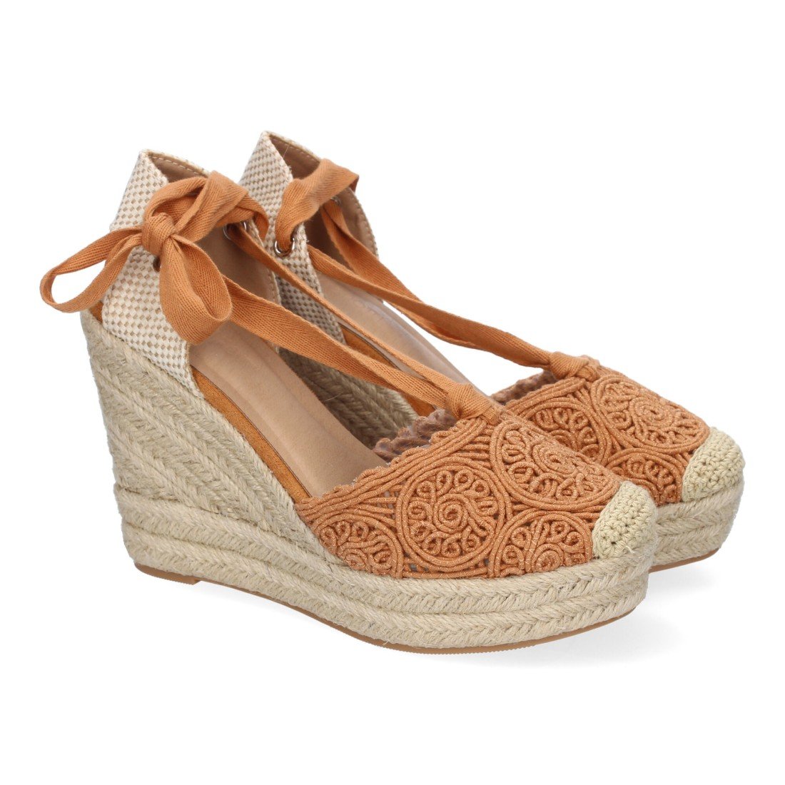 Sandalia de Cuña de Yute para Mujer, Diseño Comodo y Moderno, Elegante con Cintas