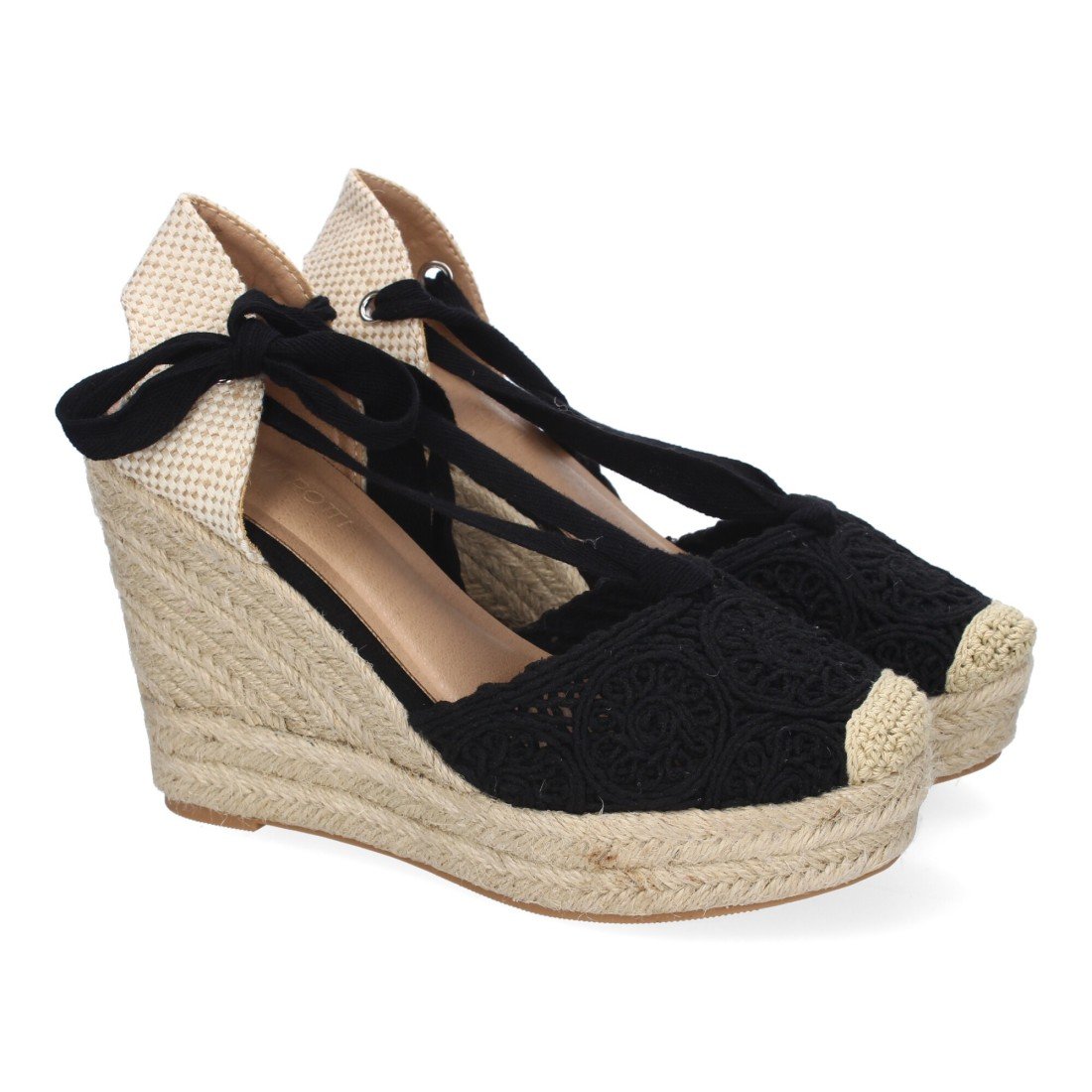 Sandalia de Cuña de Yute para Mujer, Diseño Comodo y Moderno, Elegante con Cintas Atadas al Tobillo y Pala Bordada, Ideales para Primavera-Verano.