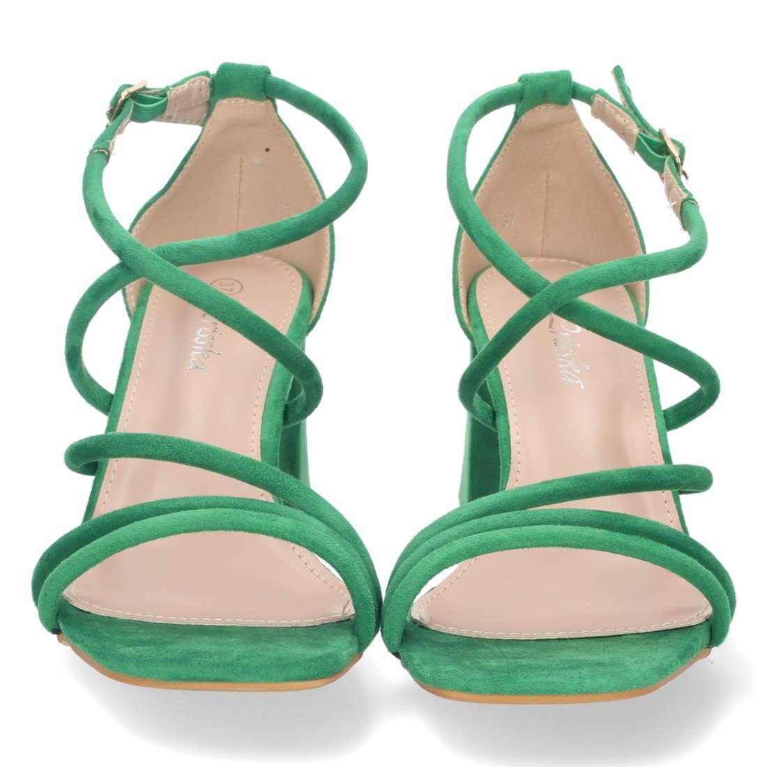 Sandalia de Tacon para Mujer, Comodo, con Tiras Finas Cruzadas, Talon Cerrado, y Cierre de Hebilla